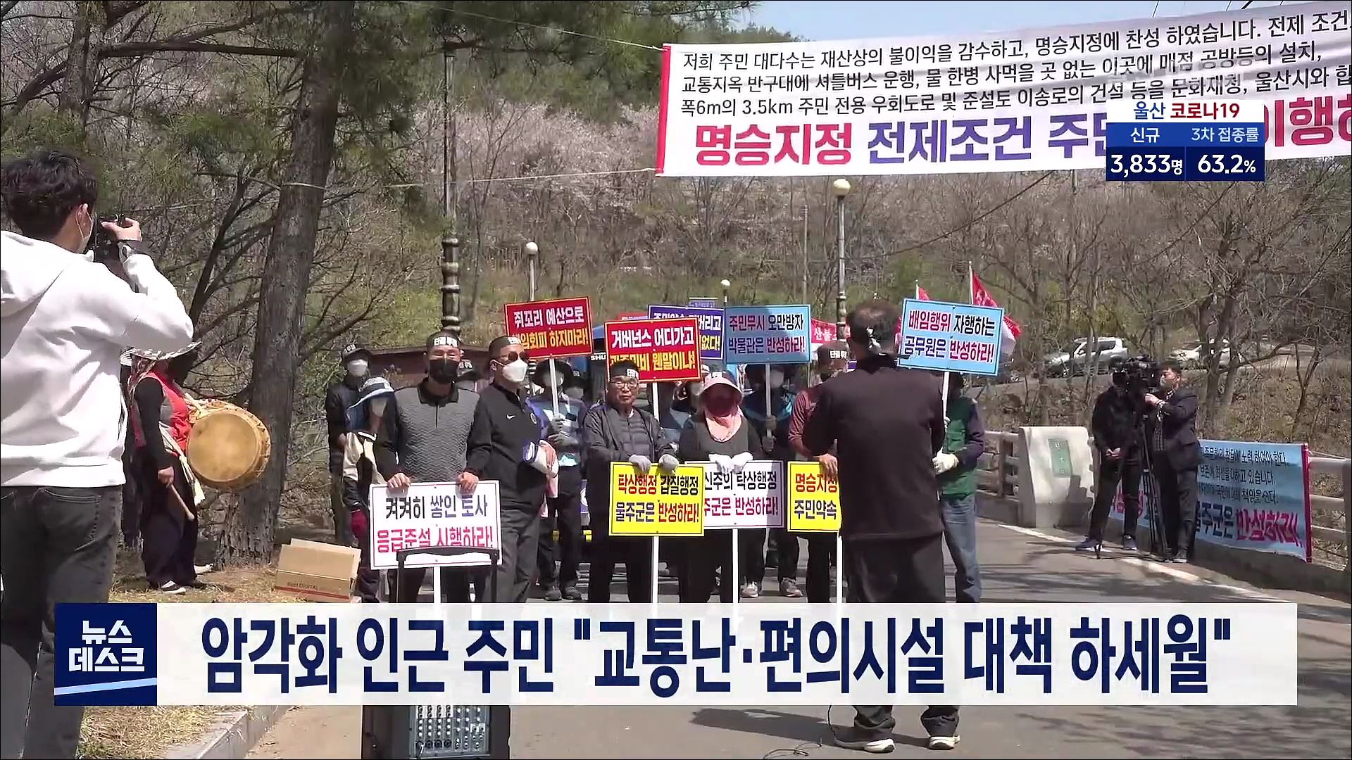 반구대 암각화 인근 지역 주민들이 국가 명승 지정 과정에서 문화재청과 지자체가 약속했던 교통난 해결과 편의시설 조성 등의 대책이 전혀 시행되지 않고 있다고 주장하고 있습니다. 이들은 재산권 침해를 감수하면서도 국가 명승 지정을 받아들인 지 1년이 지났지만 암각화 진입로의 교통 체증을 막기 위한 셔틀버스 운행...