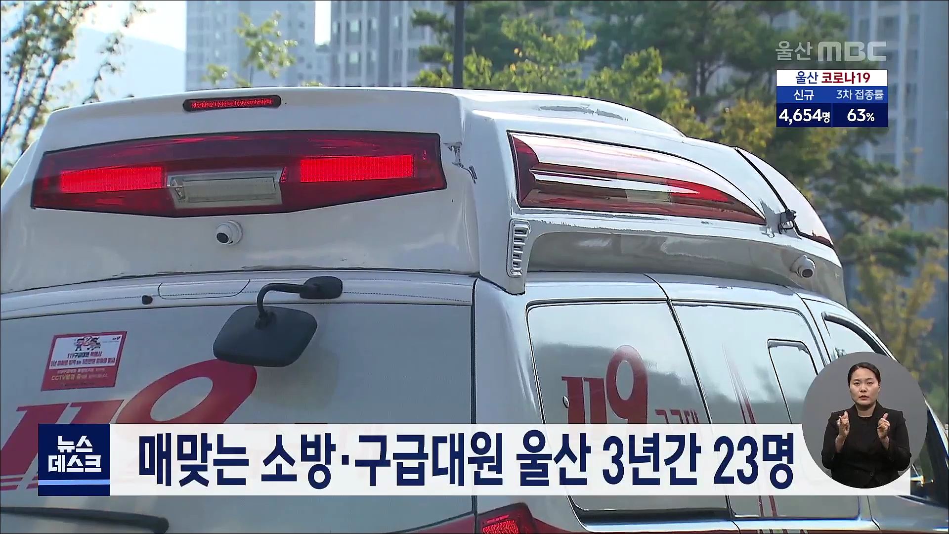 신고를 받고 출동했다가 술에 취한 사람들에게 폭언과 폭행 등의 피해를 입는 소방 구급대원들이 늘고 있습니다. 울산소방본부는 지난달 26일 남구 신정동에 출동한 구급대원이 주취자에게 안면을 맞는 등 최근 일주일 사이 구급대원 폭행 사건 2건이 발생했다고 밝혔습니다. 소방본부에 따르면 최근 3년간 폭행 등으로 피...