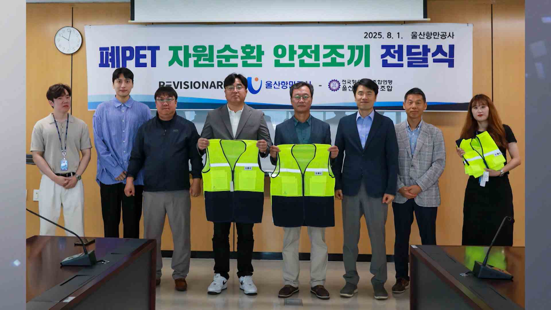 울산항만공사가 페트병을 재활용해 만든 안전조끼 1천200벌을 울산항운노조에 전달했습니다. 올해 제작된 안전조끼는 1벌당 18개의 페트병이 사용됐으며 이를 통해 1천400여kg의 온실가스를 줄였습니다. 노사는 지난 2023년부터 울산항 폐페트병을 주기적으로 수거하는 등 친환경 항만조성을 위해 함게 노력하고 있다고 밝...