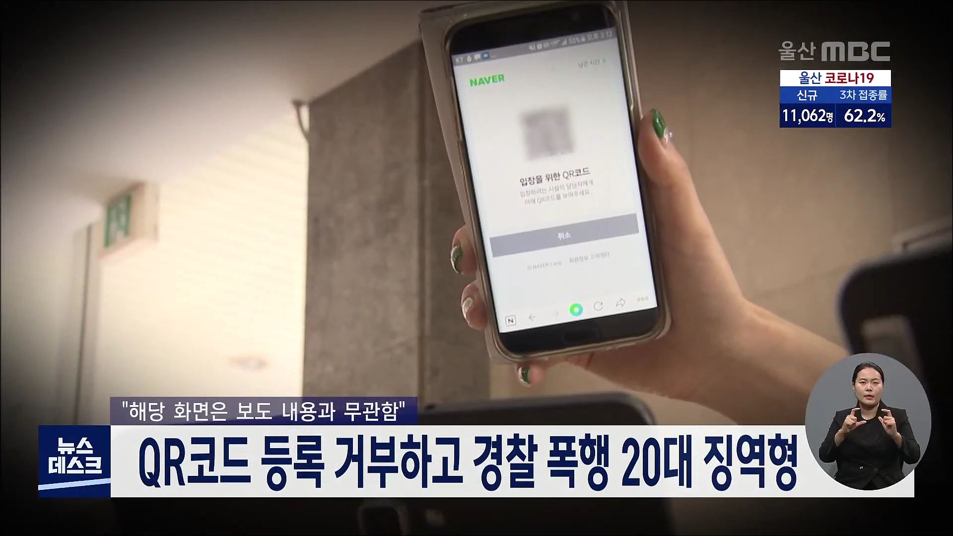 QR코드 등록 거부하고 경찰 폭행 20대 징역형