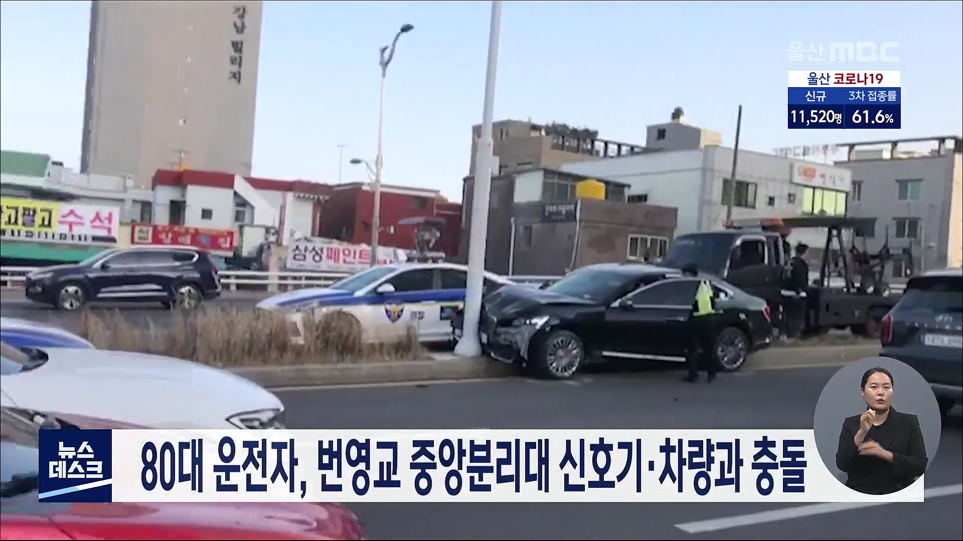 80대 운전자, 번영교 중앙분리대 신호기·차량과 충돌