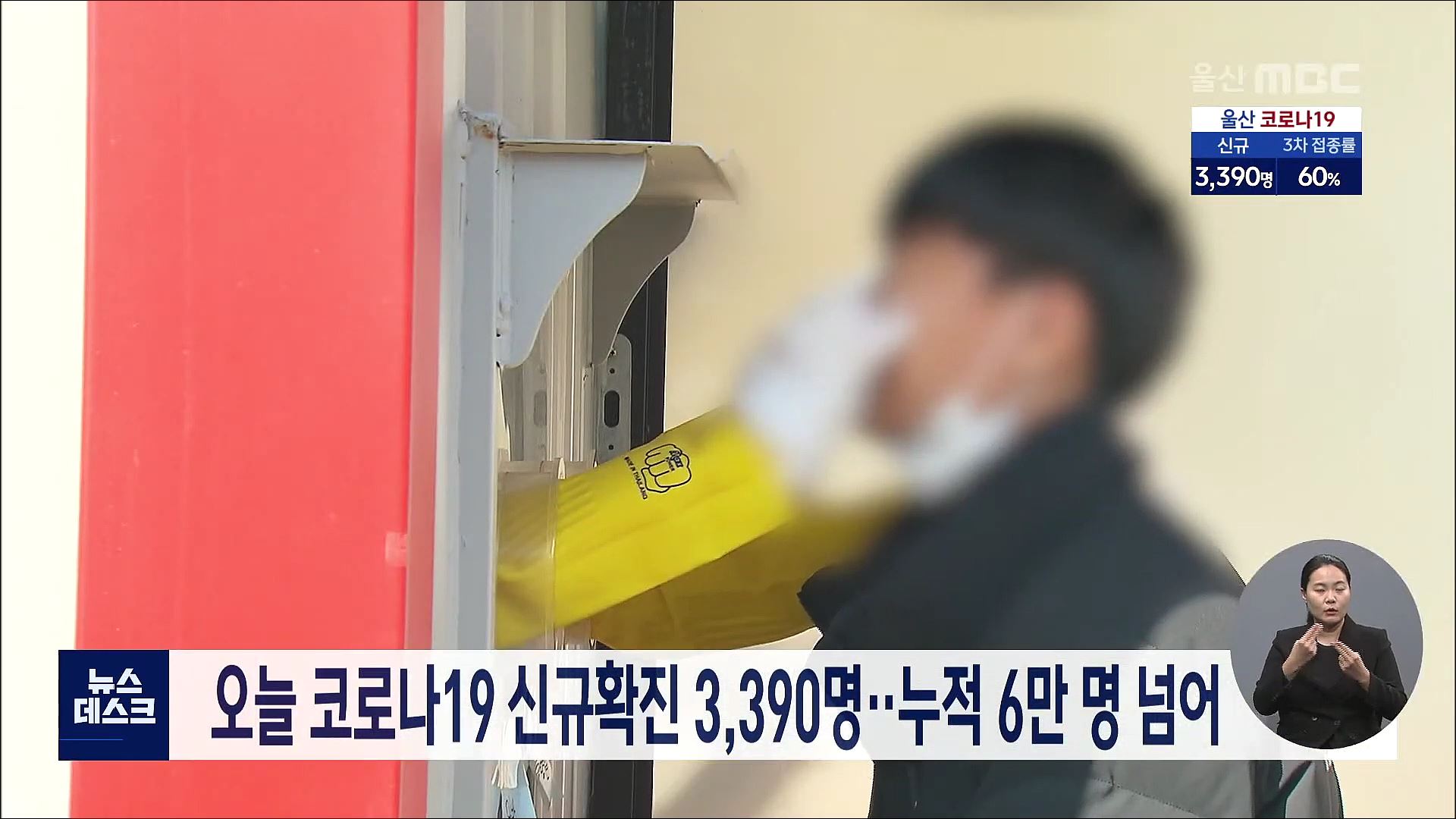 오늘(3/2) 울산에서는 코로나19 신규 확진자가 3천 390명 발생했습니다. 어제에 비해 1천 700여 명 가량 줄어든 수치이지만 이는 어제(3/1)가 공휴일이어서 검사량이 줄어들었기 때문인 것으로 분석됩니다. 오늘로 울산의 누적 확진자는 6만 1천 73명으로 6만 명을 넘겼습니다.