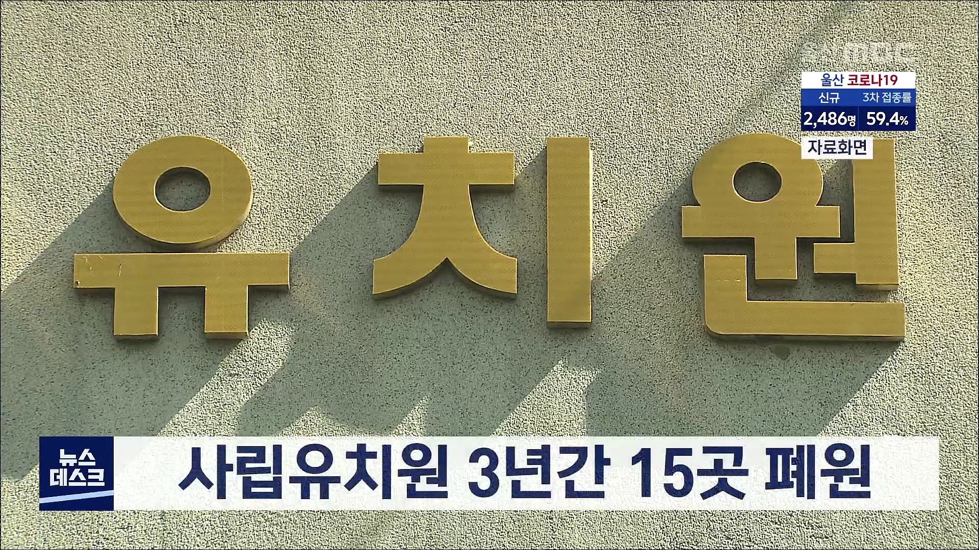 저출산에 코로나19까지 더해지면서 경영 악화로 문을 닫는 사립유치원이 늘고 있습니다. 울산시교육청에 따르면 지난 2019년 5곳의 사립유치원이 폐원했고 2020년에는 7곳, 지난해 3곳이 문을 닫았습니다. 또 현재 5곳이 폐원 신청을 하고 울산시교육청의 승인을 기다리고 있습니다.//