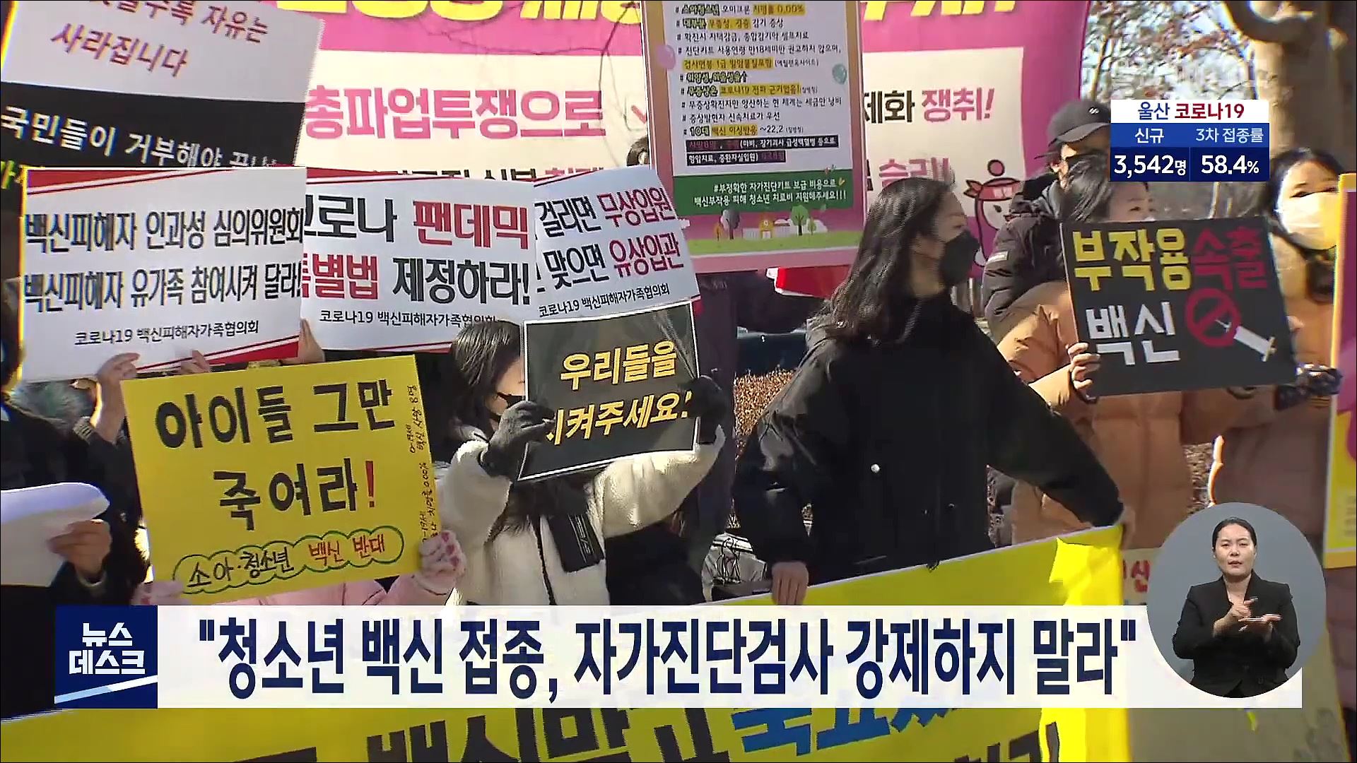 울산백신패스반대 시민연대는 오늘(2/24) 울산시교육청 앞에서 기자회견을 갖고 청소년들에게 백신 접종과 자가진단검사를 강제하지 말라고 주장했습니다. 또 교육청은 자가진단키드 검사를 하지 않았다는 이유로 학교에서 어떠한 불이익과 차별을 하지 말 것을 단위 학교에 지시해달라고 요구했습니다.