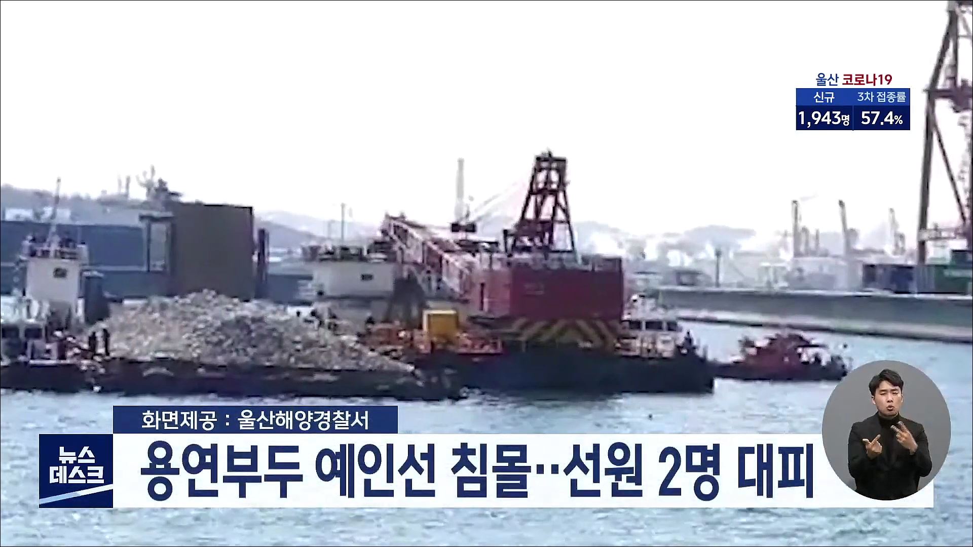 오늘(2/21) 낮 12시 6분쯤 남구 용연부두에서 작업 중이던 22톤 급 예인선이 침몰하는 사고가 발생했습니다. 사고 선박은 인근에서 작업 중이던 바지선과 부딪혀 침몰한 것으로 추정되며, 승선한 선원 2명은 인근 선박으로 대피했습니다. 해경은 사고 선박에 경유 2천 리터가 실려있어 기름 유출로 인한 해양오염에 대비하...