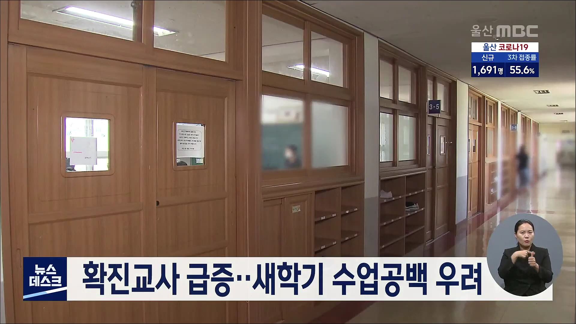 오미크론 확산세가 무서운 가운데 교사 확진자도 늘고 있어 새학기 수업 공백이 우려되고 있습니다. 최근 일주일동안 하루 평균 10명의 교사가 코로나에 확진됐고 밀접 접촉자까지 포함하면 수업이 어려운 교사는 이보다 많은 것으로 추산됩니다. 교육청은 앞으로 확진자가 더 늘 것으로 보고 기간제 교원과 시간 강사, 임...