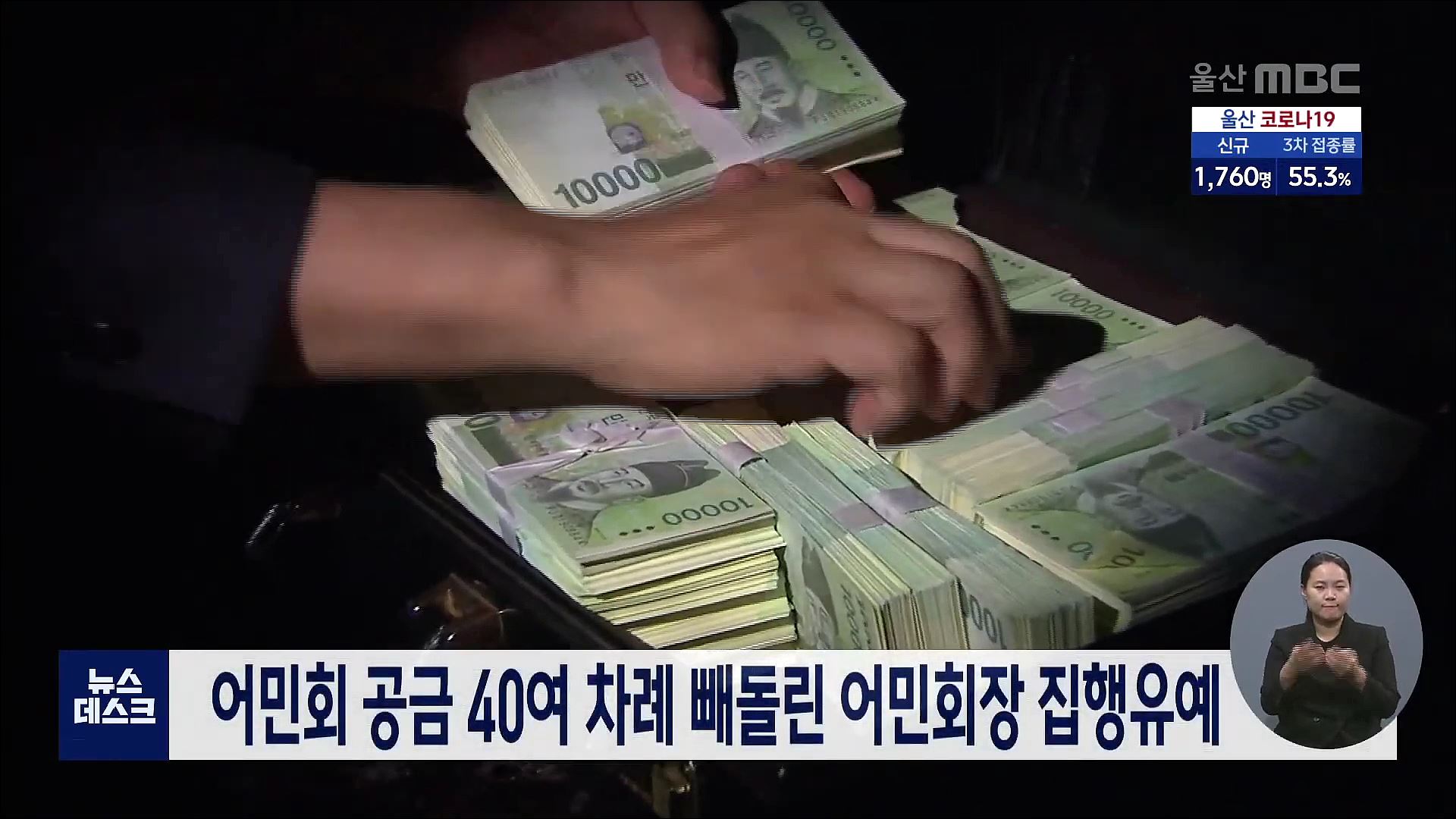 울산지법은 업무상 횡령 혐의로 재판에 넘겨진 울산 모 어민회장 A씨에게 징역 6개월에 집행유예 2년을 선고했습니다. A씨는 해수 침적 시험장 관리비, 발전기금 등 어민회 공금을 관리하면서 2013년 7월부터 2017년 6월까지 40여 차례에 걸쳐 3천200만 원을 빼내 사용한 혐의로 기소됐습니다.