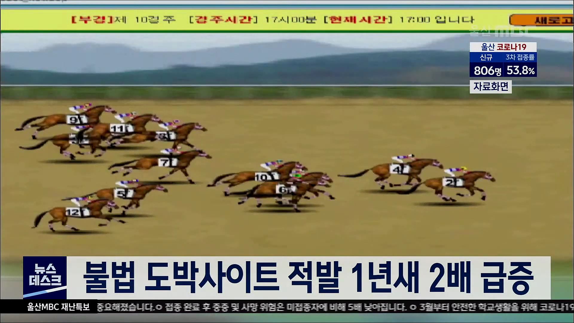 코로나19 사태 장기화 등으로 불법도박사이트가 활개를 치고 있는 것으로 나타났습니다. 울산경찰청에 따르면 지난해 불법도박사이트와 운영자 218건에 233명을 적발해 이중 3명을 구속했습니다. 이는 2019년 86건, 2020년 94건에 비해 2배 이상 크게 늘어난 수치입니다.