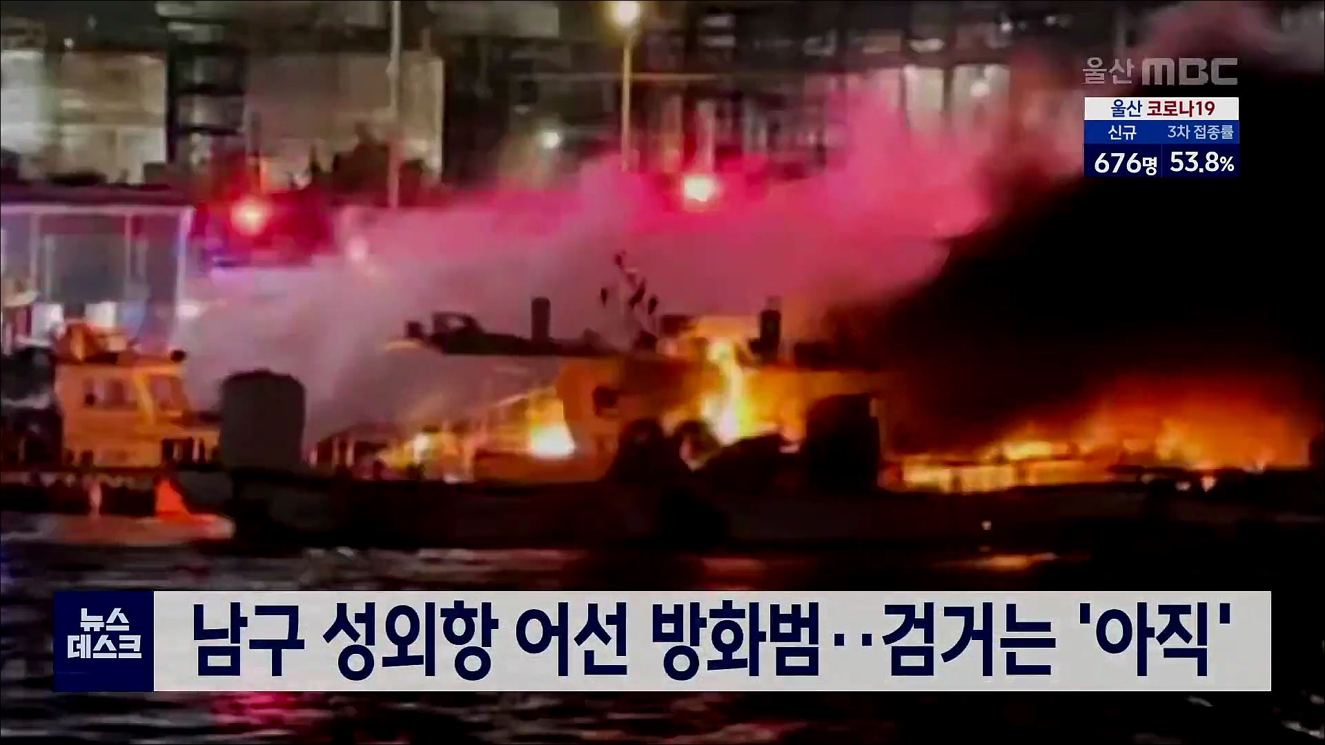 지난 3일 남구 성외항에서 발생한 방화 추정 화재사고를 수사하고 있는 울산 해경이 아직 범인을 특정하지 못 한 것으로 알려졌습니다. 인근 CCTV 등을 확보한 해경은 용의자들을 추려내 조사하고 있지만 아직 특정할 만한 인물을 찾지 못했다고 밝혔습니다. 해경은 CCTV에 촬영된 사람들의 인상착의가 정확하지 않아 범인 ...