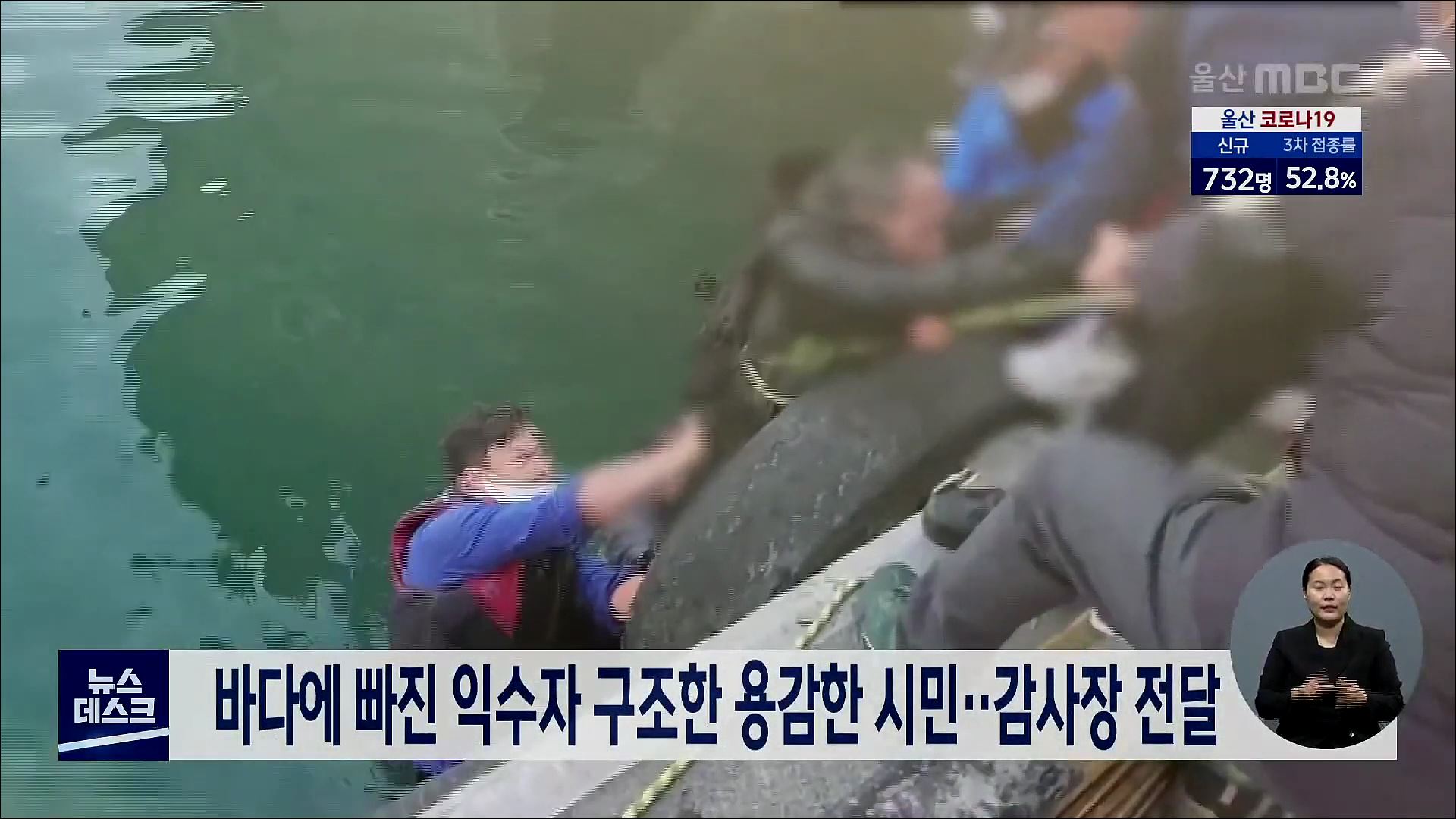 설 명절 연휴기간 방어진항에서 바다에 빠진 사람을 구조한 시민에게 감사장이 수여됐습니다. 해경은 지난달 30일 방어진 공동어시장에서 술에 취해 바다에 빠진 60대 남성을 보고 직접 바다에 뛰어들어 구조한 송영봉씨에게 감사장을 전달했습니다. 송 씨는 바다에 빠진 사람을 보고는 구해야한다는 생각만 들었다며 소감...