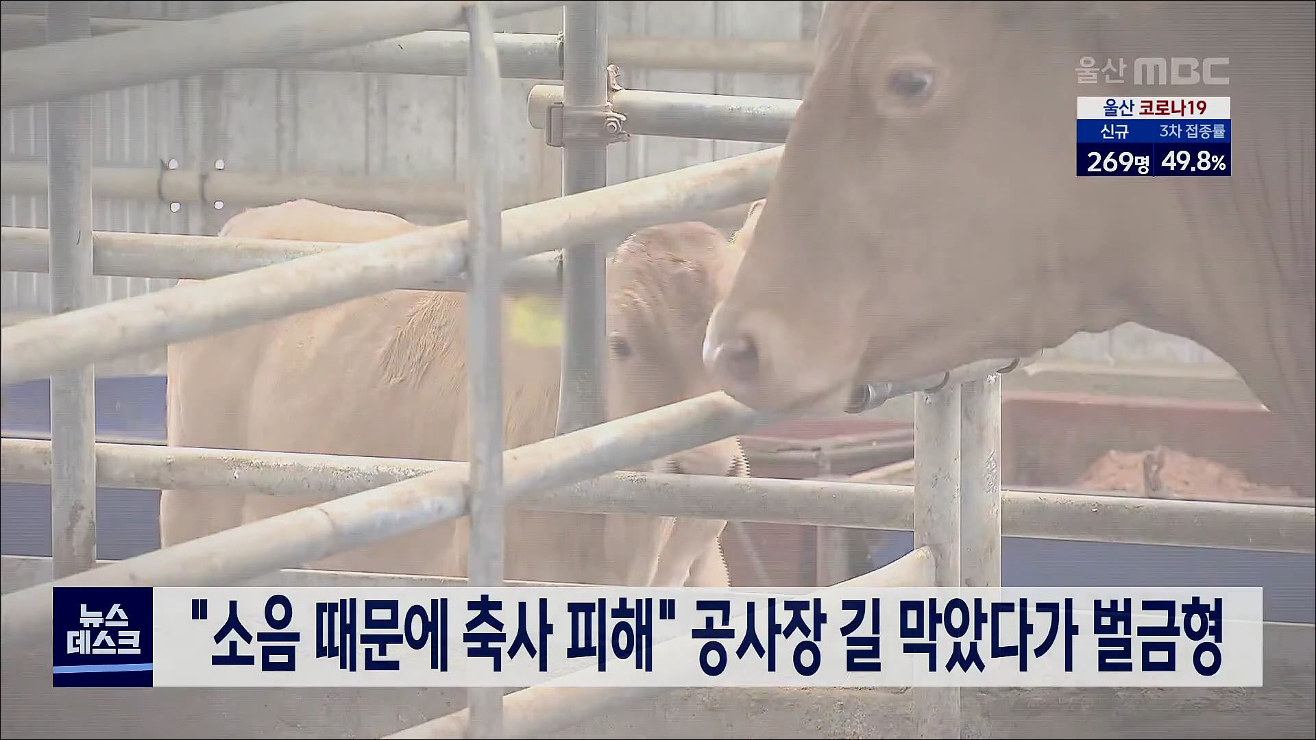 울산지법 박주연 판사는 공사 소음 때문에 소들이 스트레스를 받는다며 공사장 진입로를 막은 혐의로 기소된 A씨에게 벌금 50만 원을 선고했습니다. 울주군에서 축사를 운영하는 A씨는 지난 2월 주변 공사장에서 발생하는 소음 때문에 소들이 조기 출산을 하는 등의 피해가 발생했다며 농기계 2대로 공사장 진입로를 막은 ...