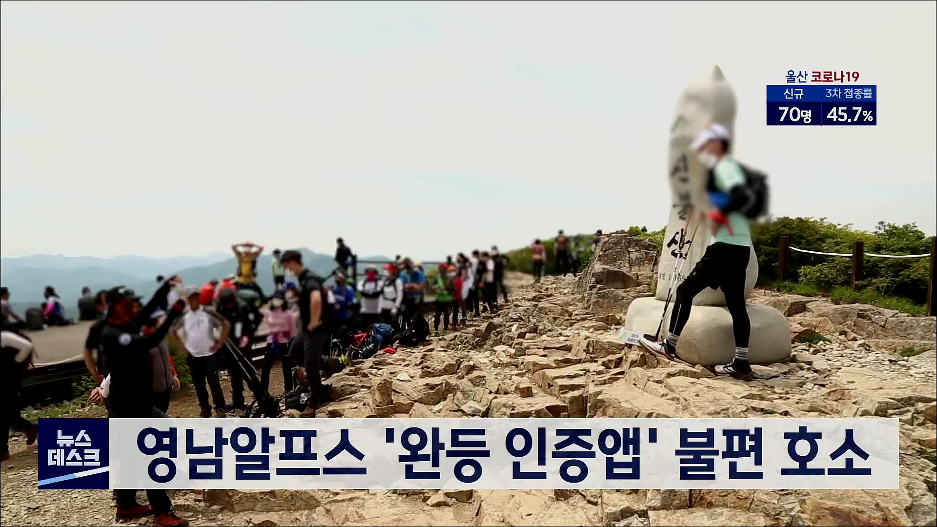 울주군의 영남알프스 완등 인증사업과 관련해 올해부터 인증 전용 모바일 전용앱이 도입됐지만 인증방식이 더 불편하다는 민원이 쇄도하고 있습니다. 울주군은 영남알프스 9봉 정상석 인근에 사람이 너무 많이 몰려 대기시간이 지나치게 길어진다는 문제를 해소하기 위해 모바일 전용앱인 '영남알프스 완등 인증'을 운영중...