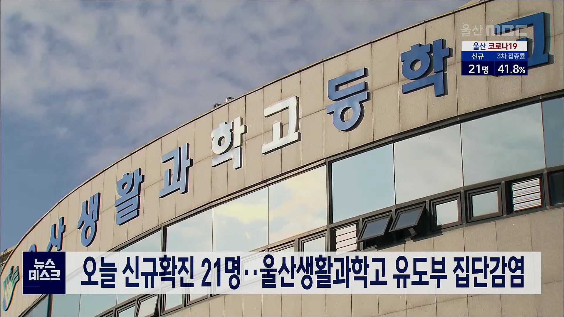 오늘(1/16) 울산에서는 코로나19 신규 확진자가 21명 발생했습니다. 동구 울산생활과학고 유도부에서 집단 감염이 발생해 학생 10명이 확진됐고, 이들과 함께 훈련을 했던 중학생 3명도 감염되는 등 관련 확진자는 현재까지 모두 18명으로 확인됐습니다. 한편 오늘(1/16) 0시 기준으로 울산지역의 코로나19 백신 3차 접종 ...
