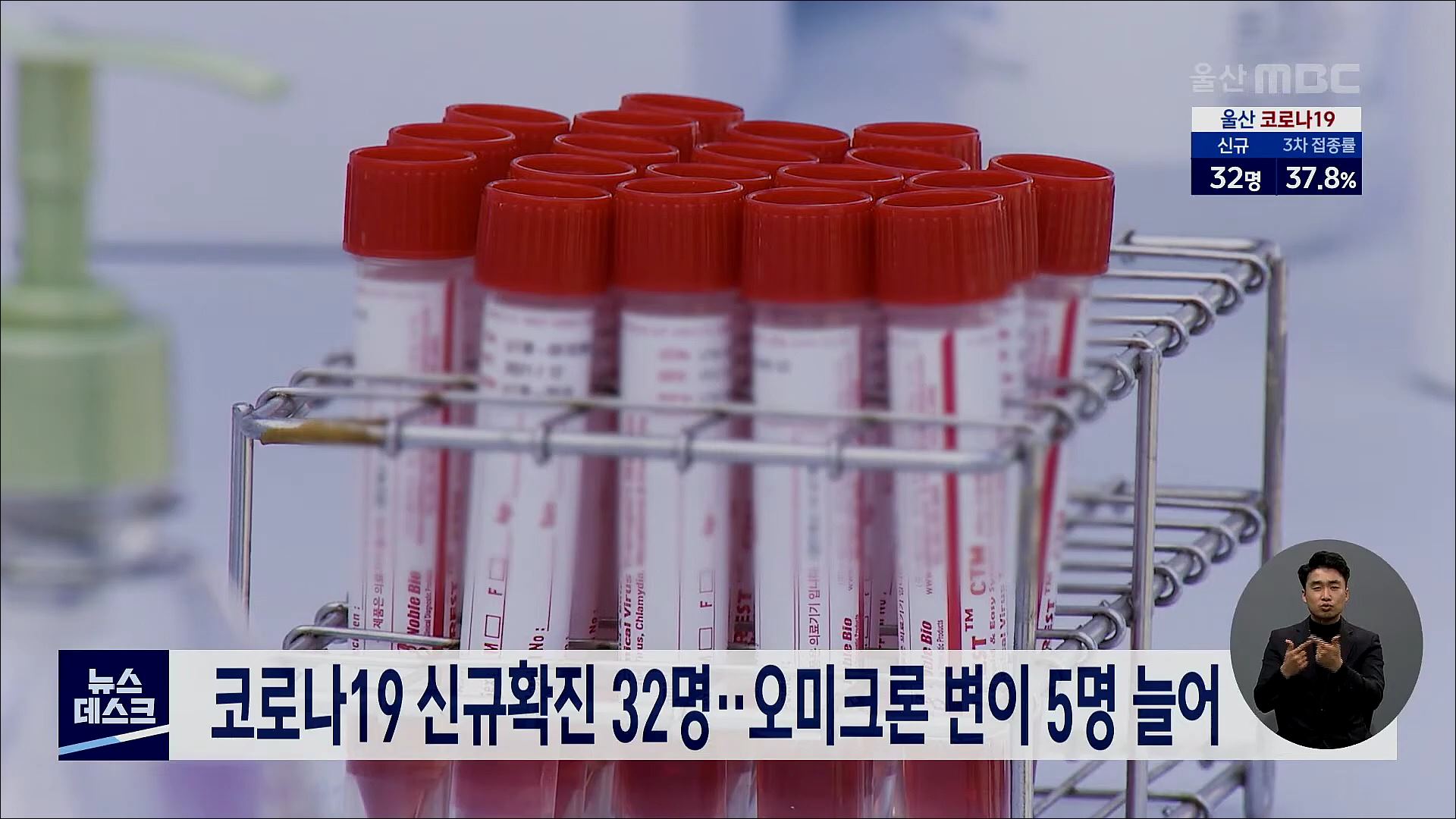 오늘(1/11) 울산에서는 코로나19 신규 확진자가 32명 발생했습니다. 27명은 기존 확진자의 접촉자이며 2명은 해외 입국자, 3명은 감염 경로를 조사중입니다. 또 오늘(1/11) 울산에서는 해외 입국자 4명과 부산 지역 확진자를 접촉한 1명이 오미크론 변이에 감염된 것으로 새로 확인됐습니다.