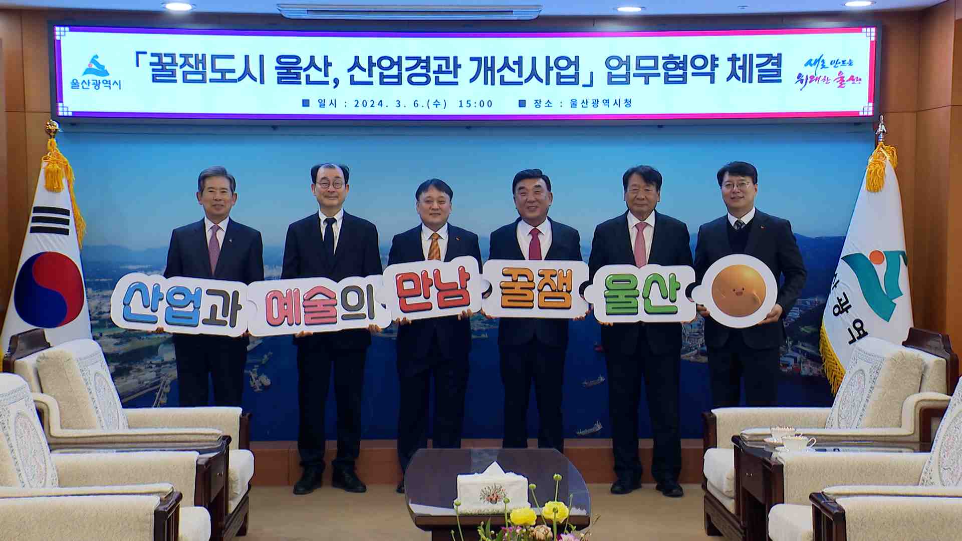 회색빛 공업도시라는 부정적인 인식 개선을 위해 산업공단에 미디어아트 조형물이 설치된 예술거리가 조성됩니다.울산시는 오늘(3/6) SK이노베이션과 울산상공회의소, 울산대학교와 '꿀잼도시 울산, 산업경관 개선사업'을 위한 업무협약을 체결한다고 밝혔습니다.이 사업을 통해 SK이노베이션 울산공장 삼거리에 지름 6m의 ...