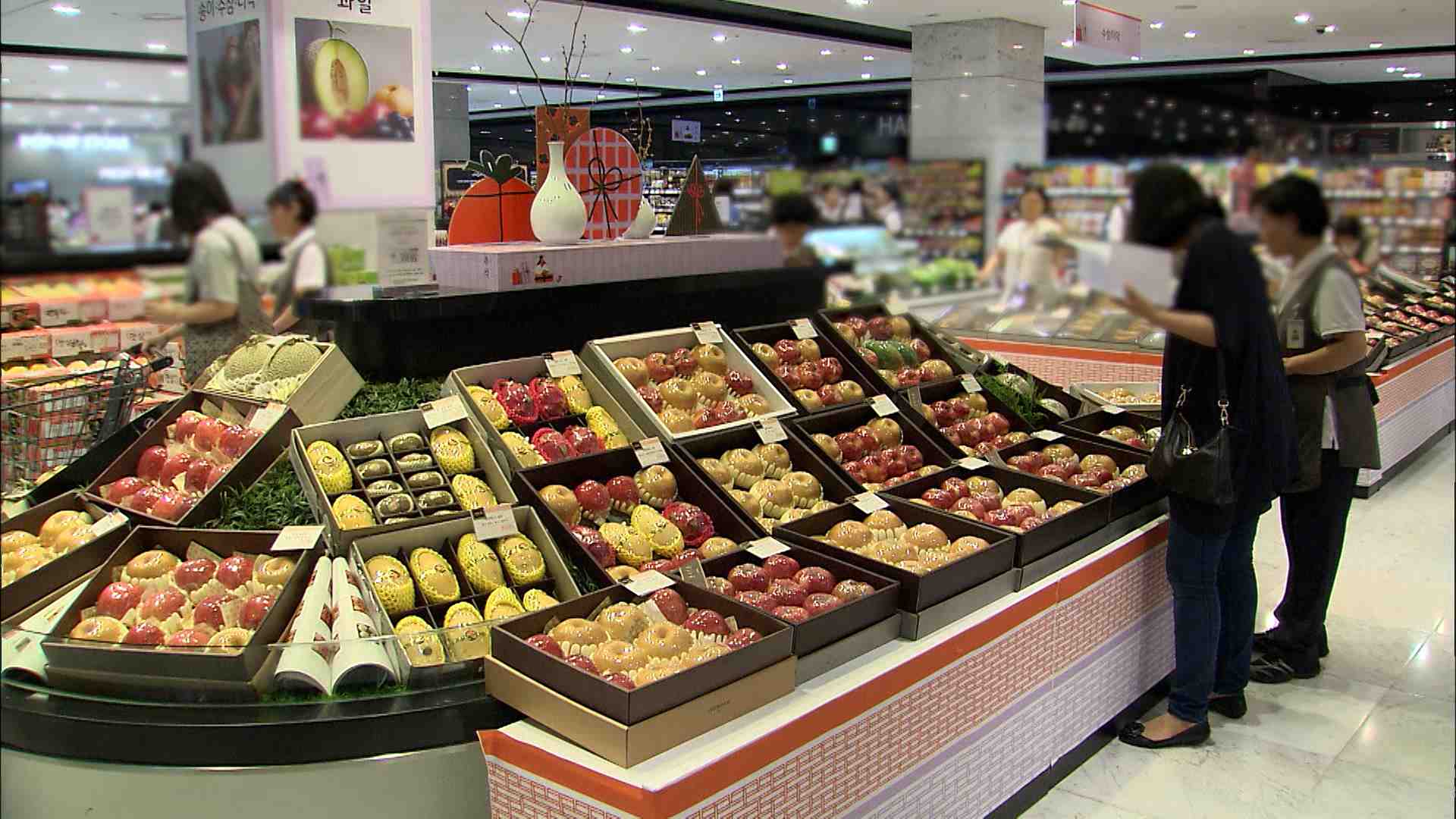 올해 기상재해로 인한 수확량 감소로 과일 가격이 상승하면서 설 과일세트 선물 가격도 급등한 것으로 나타났습니다. 한국농수산식품유통공사에 따르면 16일 기준신정시장에서 판매되는 사과 10개의 소매가는 3만원으로 전년 대비 28.76%, 감귤 10개는 4천 500원으로 전년 대비 43.77% 올랐습니다.현대백화점에는 배와 한라...