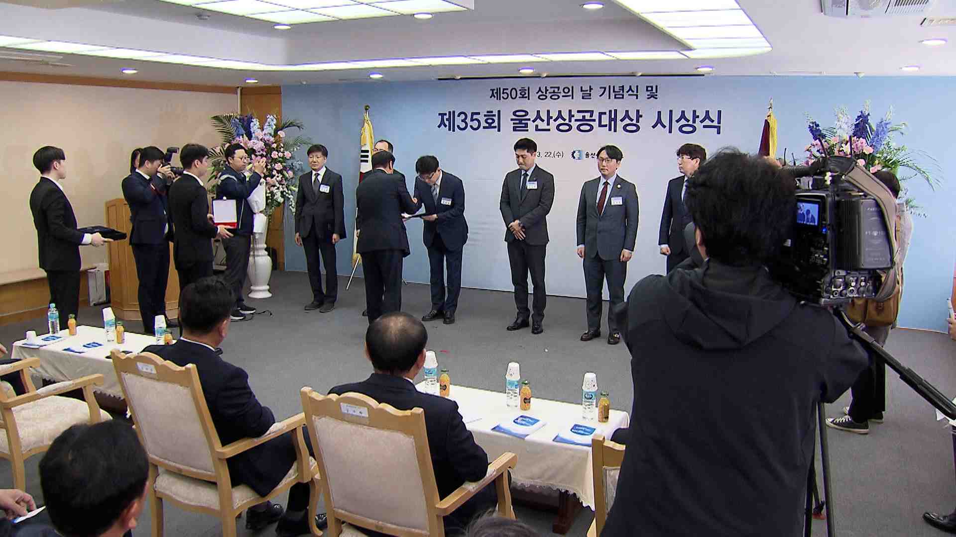 울산상공회의소는 오늘(3/22) 제50회 상공의 날 기념식과 제 35회 울산상공대상 시상식을 열었습니다. 이번 기념식에서는 주식회사 유벡 김성열 회장이 철탑산업훈장을 전수 받는 것을 비롯해 5명이 울산 경제 발전에 기여한 공로로 유공상을 받았습니다. 또 주식회사 동부 김재홍 대표이사와 현대중공업 노준섭 선체설계 1...