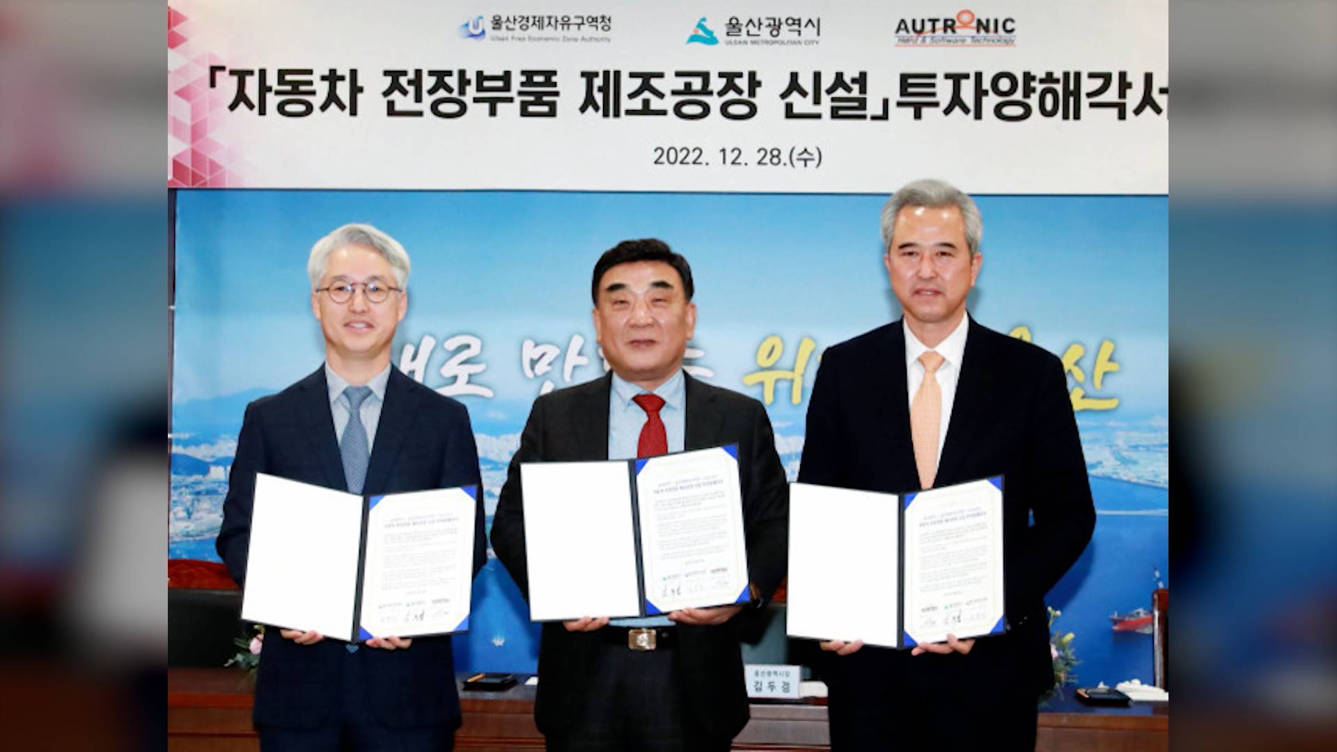 주식회사 오트로닉이 울주군 삼남면 하이테크밸리 산업단지에 자동차 전장부품 생산공장을 짓기로 하고 오늘(12/28)울산시와 울산경제자유구역청과 협약을 체결했습니다. 부산에 본사를 둔 오토로닉은 407억원의 사업비를 투자해 부지 만5천여㎡ 규모의 자동차 전장부품 제조 공장을 내년 1월 착공해 오는 2024년 3월 준공...