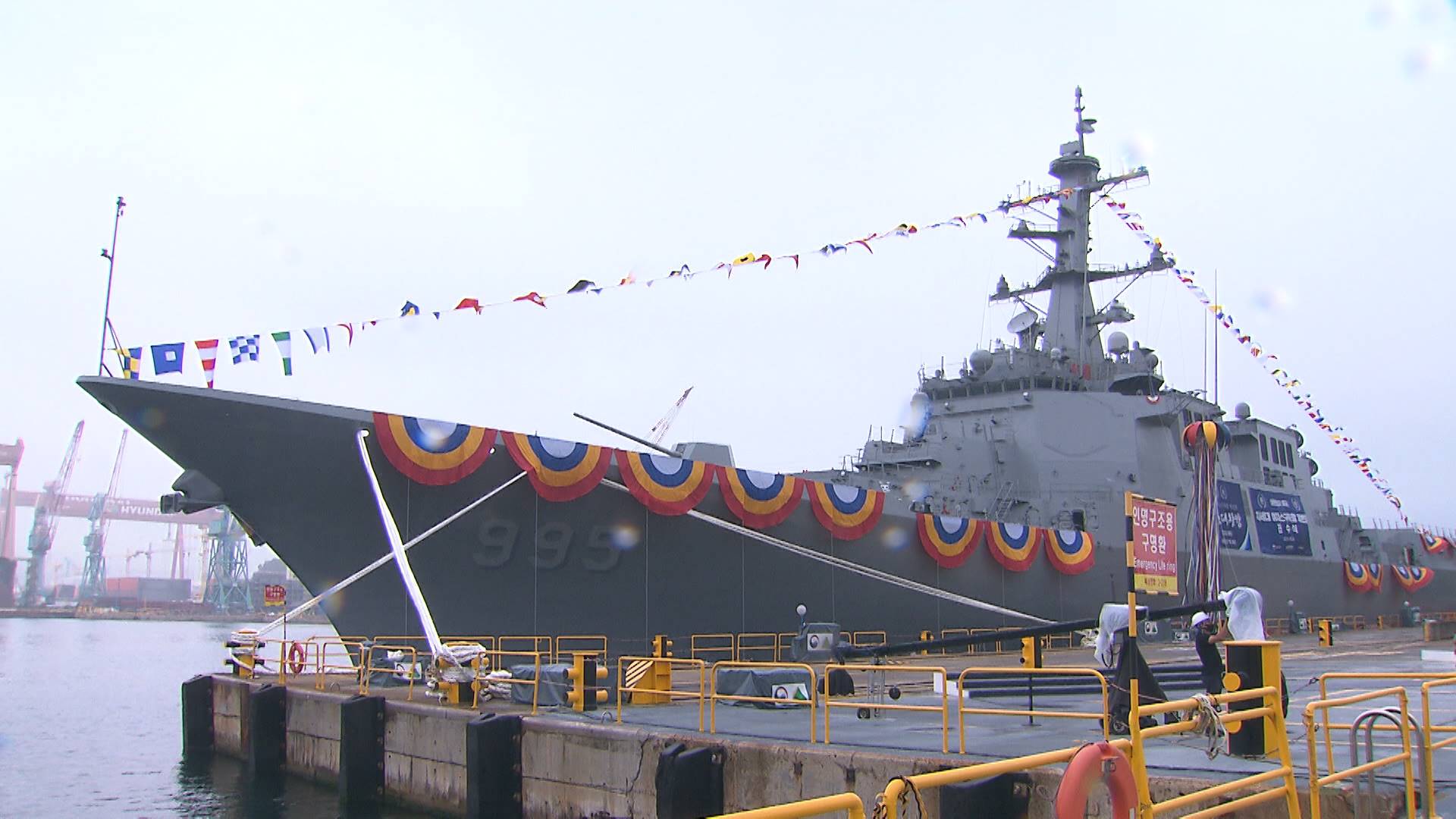 현대중공업은 오늘(7/28) 윤석열 대통령이 참석한 가운데 첫 번째 차세대 이지스함인 정조대왕함 진수식을 가졌습니다. 정조대왕함은 길이 170미터, 폭 21미터에 8200톤 규모로, 최대 시속 약 55㎞로 항해할 수 있습니다. 또 다기능 위상배열 레이더 등을 갖춰 기존 이지스함보다 탐지·추적 능력을 2배 이상 강화했습니다.