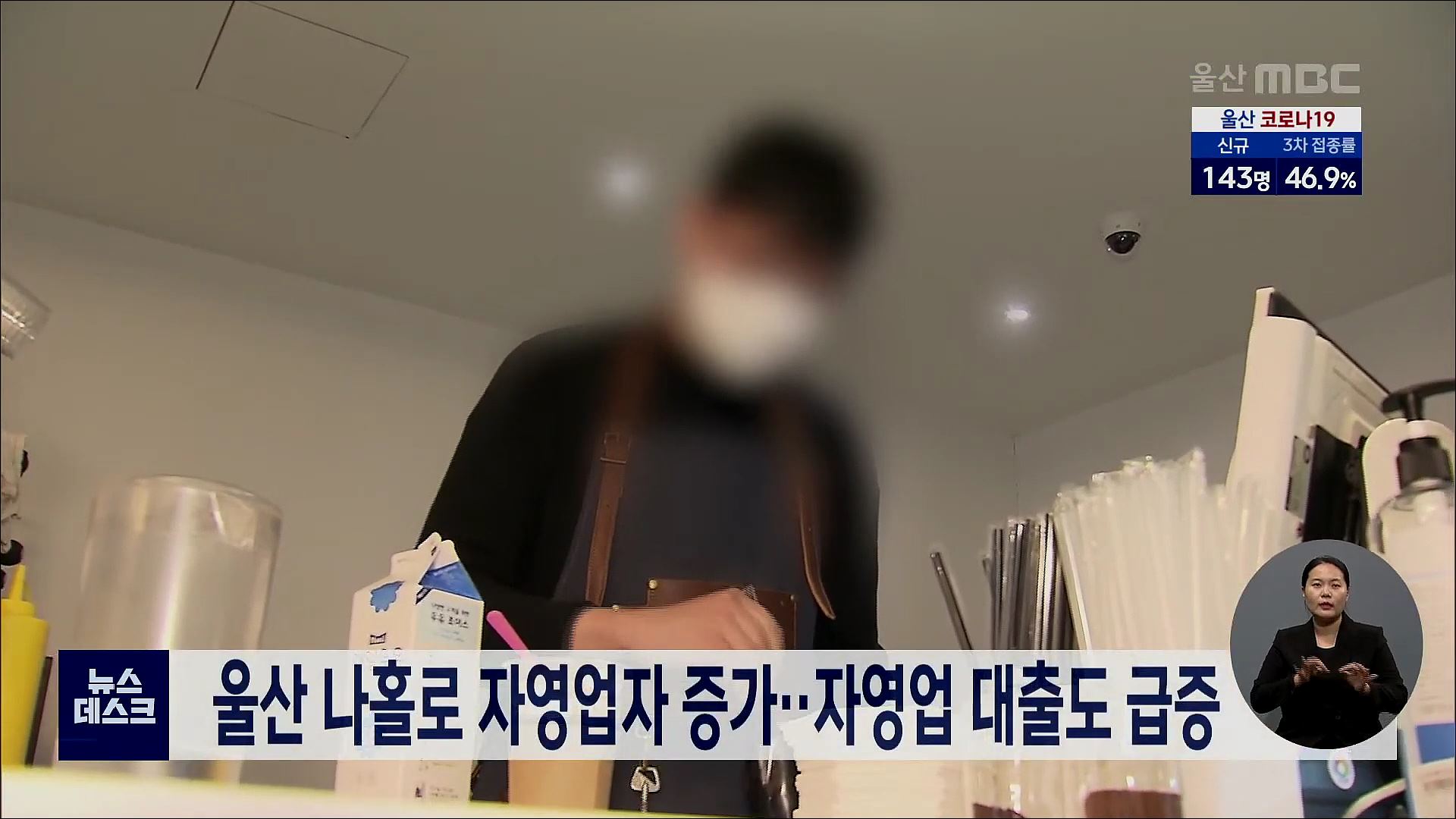 울산에서 나홀로 자영업자가 크게 늘고 있는 가운데 자영업 대출도 가파르게 증가하고 있습니다. 한국은행 울산본부에 따르면 지난해 울산지역 자영업자 9만 명 가운데 고용원이 없는 자영업자 비중은 76.7%로 7대 대도시 가운데 가장 많았습니다. 울산지역 자영업자 대출잔액은 지난해 9월 말 기준 16조1천억원으로, 코로...