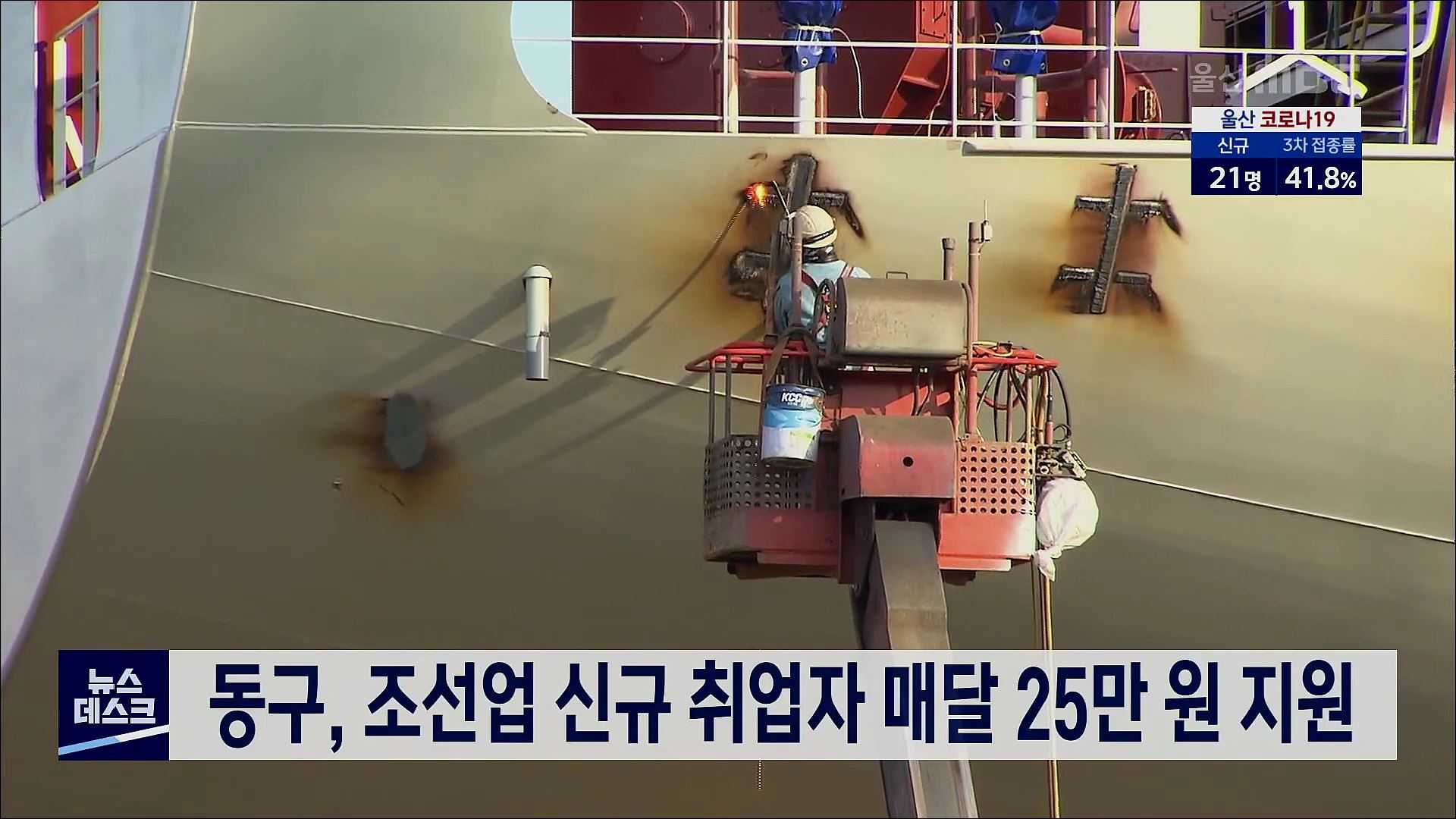 동구, 조선업 신규 취업자 매달 25만 원 지원