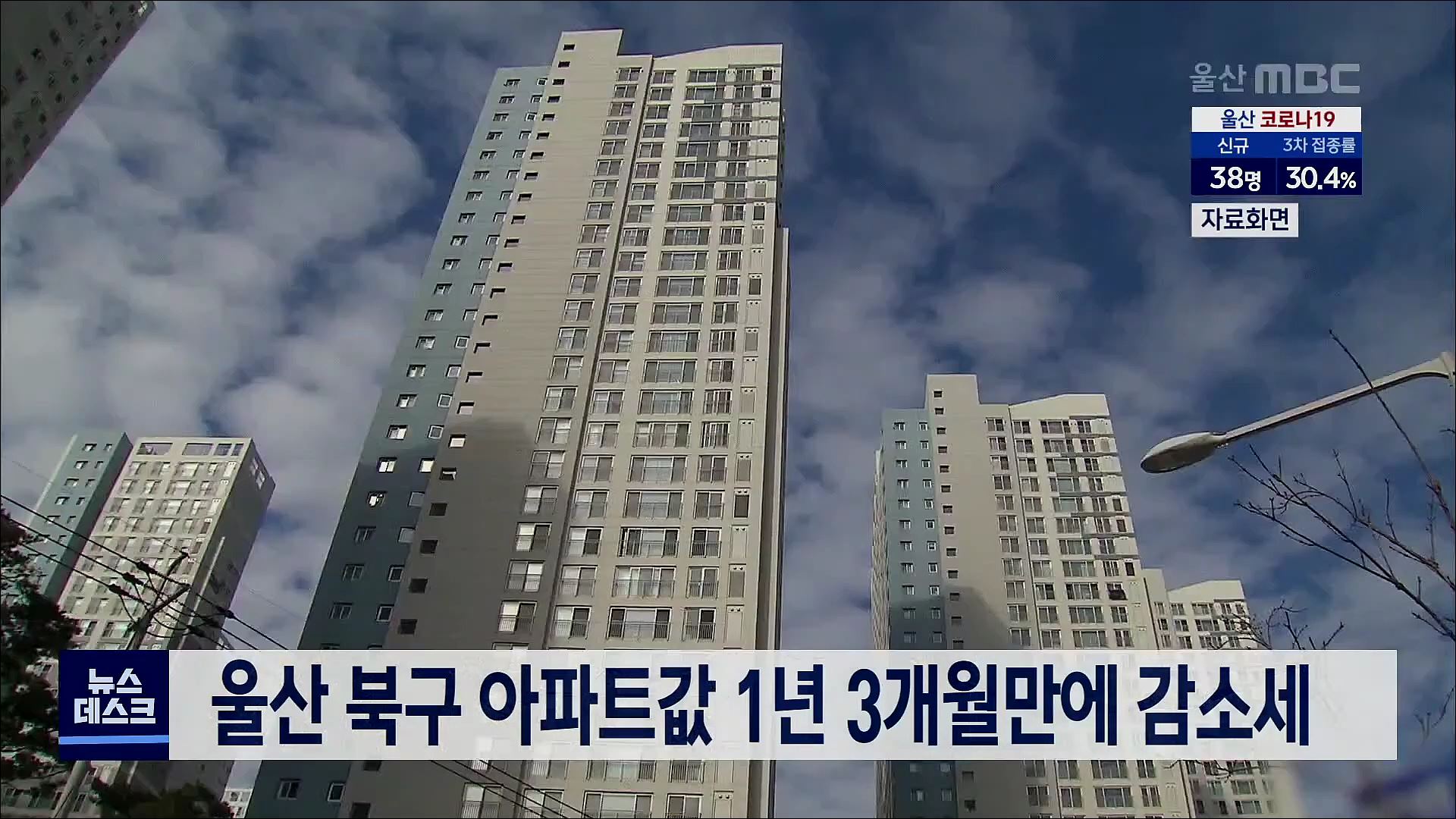 울산 북구의 아파트값 상승세가 1년 3개월 만에 멈췄습니다. 한국부동산원에 따르면 작년 12월 넷째 주 울산 아파트값은 0.04% 올랐으나 상승폭은 전주 대비 0.02%줄었습니다. 구·군별로 보면 북구가 0.01% 떨어지며 2019년 9월 넷째 주 이후 1년 3개월만에 하락세로 돌아섰습니다. 지난해 마지막 주 울산지역 아파트 전셋...