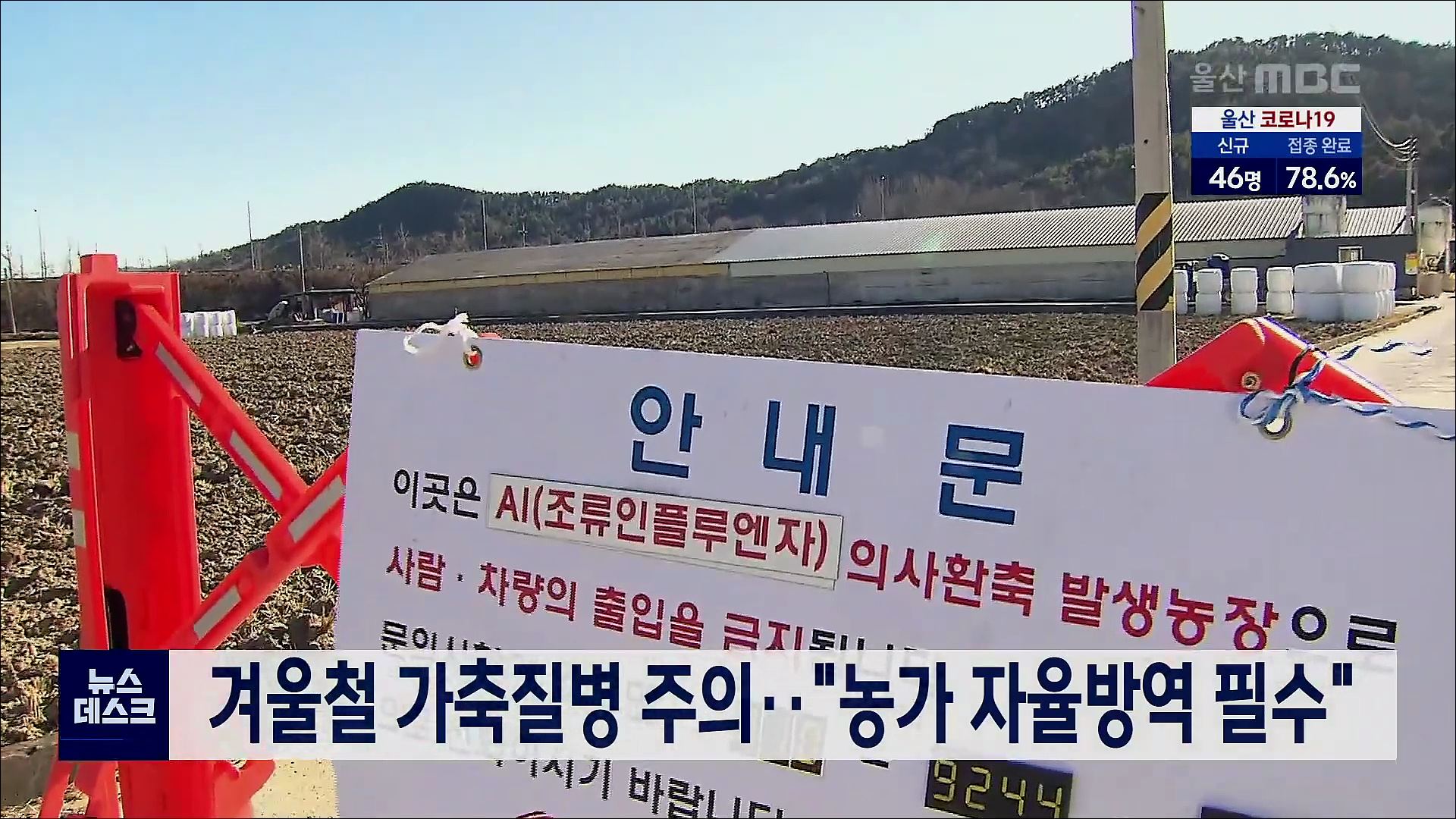 겨울철 들어 전국 각지에서 가축 질병이 늘어나면서 울산보건환경연구원이 축산 농가에 방역 강화를 당부했습니다. 연구원은 지난달부터 충청도와 전라도 지역 가금류 농장에서 고병원성 조류 인플루엔자가 퍼지고 있고 소 결핵병도 증가하는 추세라고 밝혔습니다. 또 아프리카돼지열병에 감염된 야생멧돼지 발견 지역이 경...