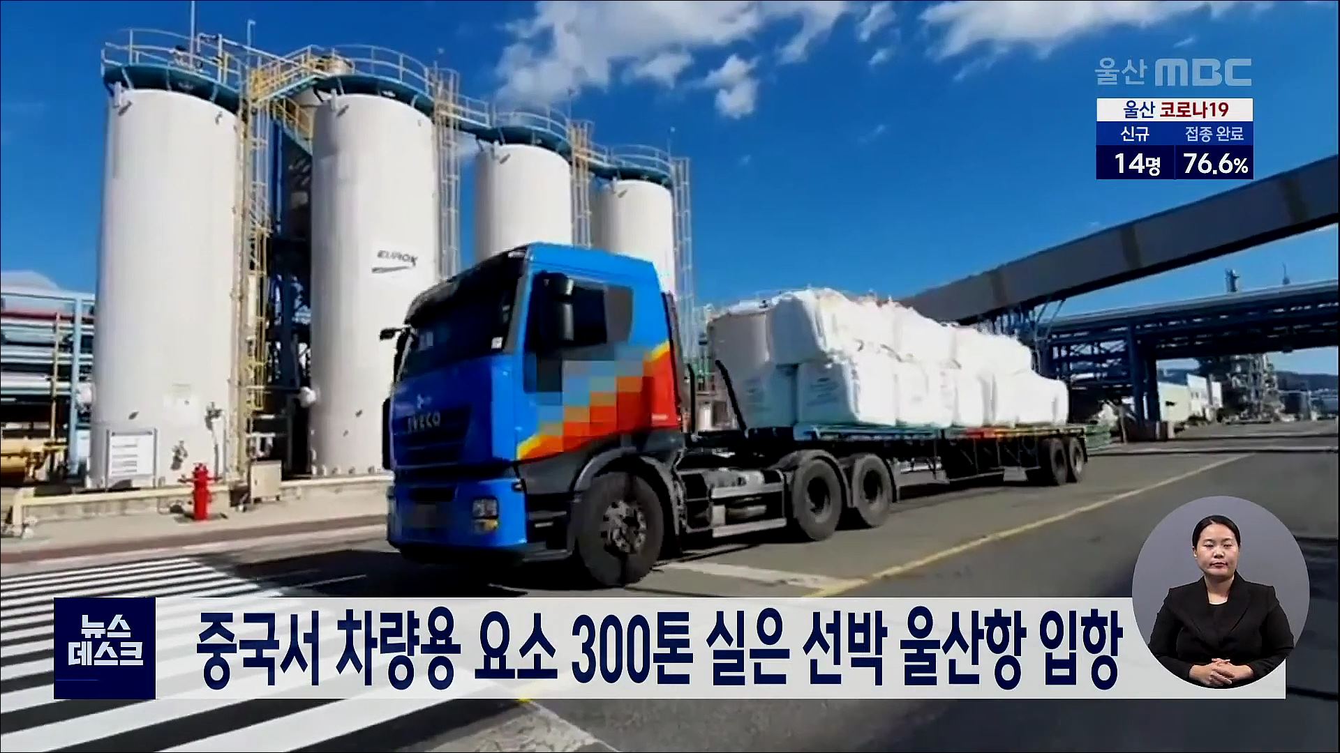 중국서 차량용 요소 300톤 실은 선박 울산항 입항