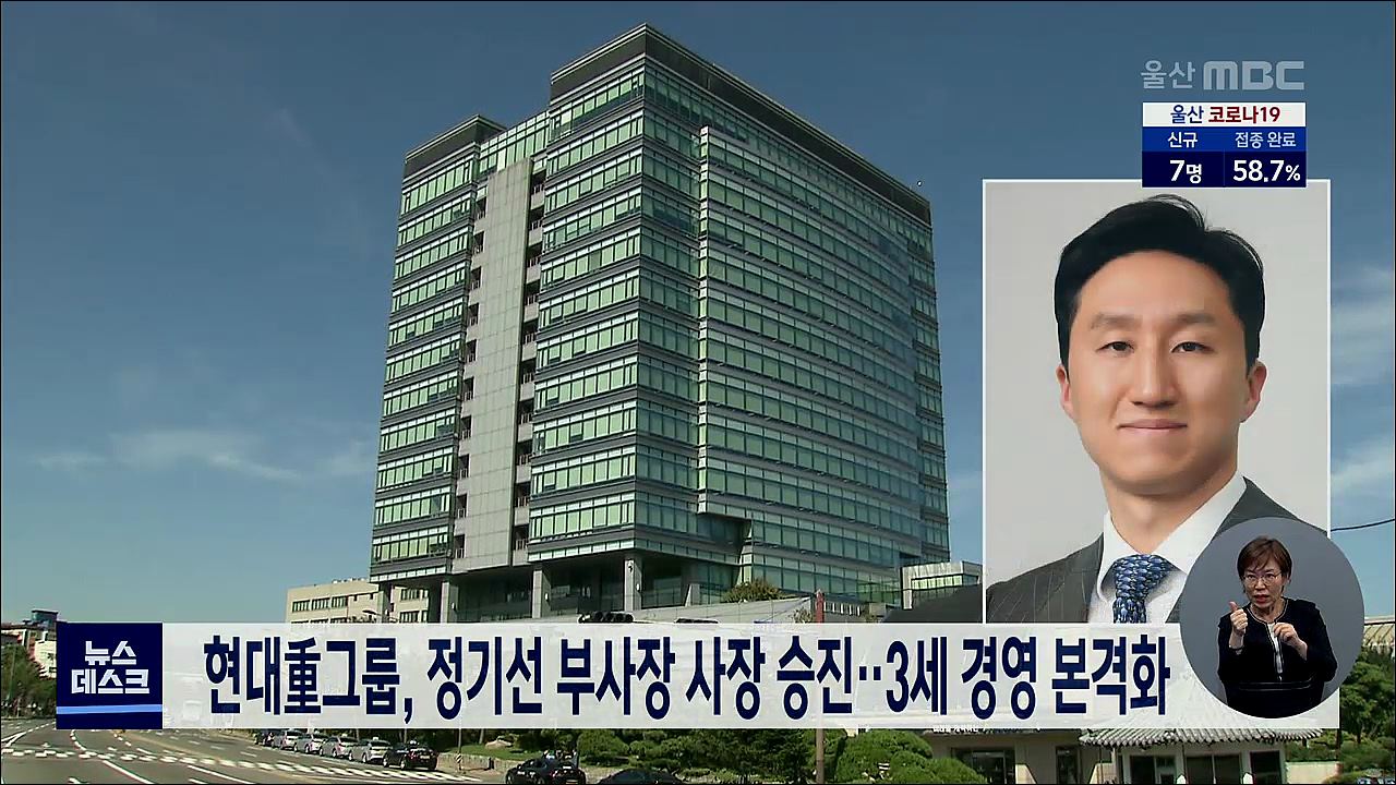 정몽준 아산재단 이사장의 장남인 현대중공업 지주 정기선 부사장이 사장으로 선임되면서 3세 경영이 본격화 됐습니다. 정 부사장은 한국조선해양 대표이사에도 내정됐습니다. 현대중공업그룹은 또, 한영석 현대중공업 사장을 부회장으로 승진 발령하는 등 사장단 인사를 단행했습니다.