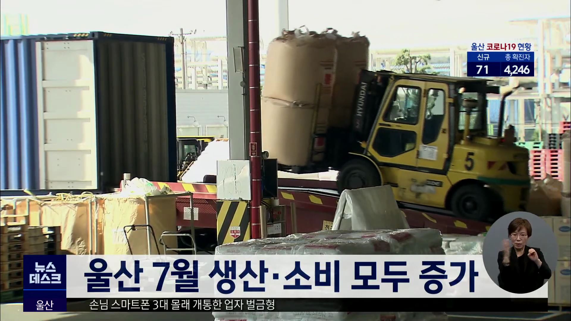 코로나19 확산에도 불구하고 7월 울산지역 생산과 소비가 늘어난 것으로 나타났습니다. 동남지방통계청이 발표한 산업활동동향에 따르면 7월 울산지역 광공업 생산은 반도체 부품 수급 차질에 따른 자동차 생산 감소에도 화학제품 생산 증가에 힘입어 전년 대비 0.4% 증가했습니다. 백화점 판매는 소비 심리 회복에 힘입어 ...