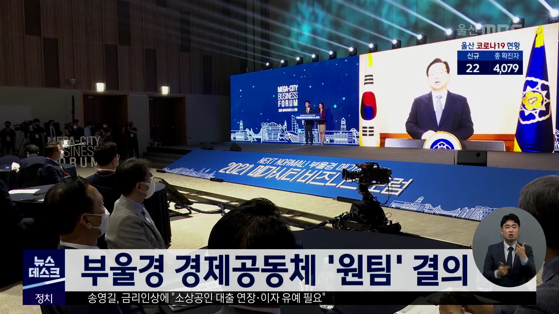 울산과 부산, 경남이 공동 발전을 도모하는 2021 부울경 메가시티 비즈니스 포럼이 오늘(8/27) 울산전시컨벤션센터에서 열렸습니다. 3개 시·도지사는 경제공동체 '원팀' 결의문을 낭독하고 경제공동체 구축 등을 위해 함께 노력하기로 했습니다. 부울경은 내년 전국 최초 특별지방자치단체를 출범시킬 계획입니다. //