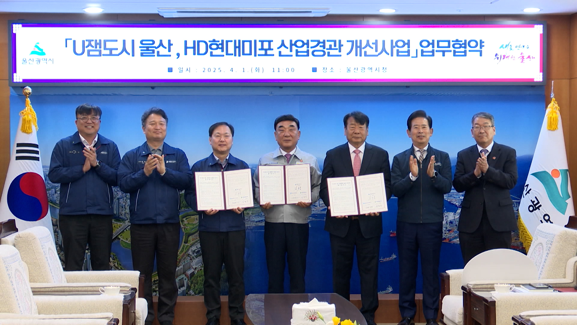 HD현대미포가 공장 외벽에 색채 디자인을 적용해 산업 경관을 개선합니다. 울산시와 울산상공회의소, HD현대미포는 오늘(4/1) 업무협약을 맺고 14억 원을 투입해 낡고 어두운 공장 이미지를 밝고 산뜻하게 탈바꿈하기로 했습니다. 지난해 본관과 기숙사, 고객지원관 외벽을 도색한 현대미포는 올해 말까지 공장 14개동을 추...