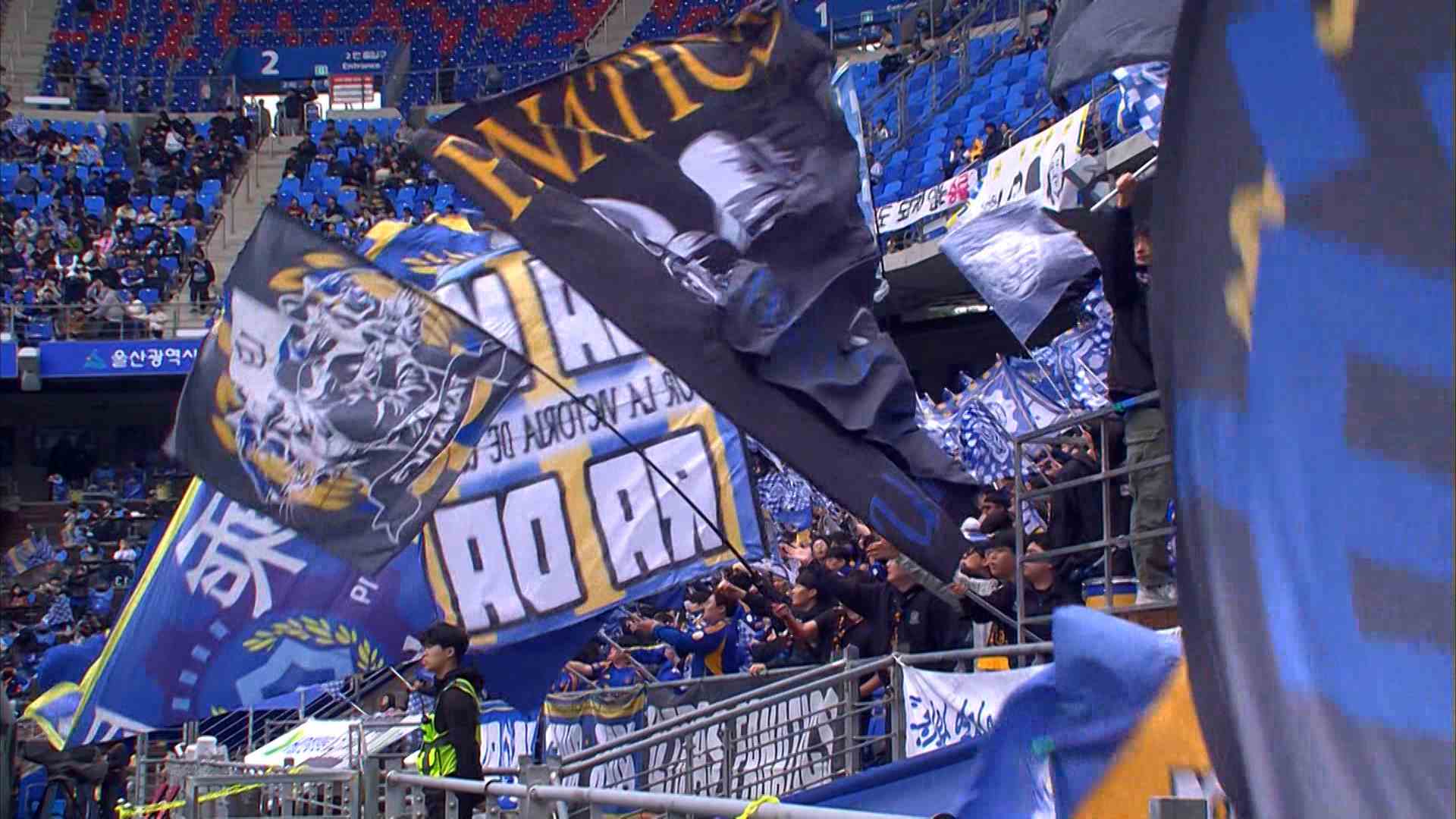 [앵 커 ] K리그 울산의 현재 성적은 6위입니다. 10년 만에 가장 낮은 순위에 머물고 있는 건데요. 1위 전북에 승점 15점 차이로 뒤져있고, 코리아컵도 8강에서 탈락해 '빈손' 시즌 우려가 높아지면서 팬들의 반발도 커지고 있습니다. 정인곤 기자 [리포트] 지난 주말 문수축구경기장에서 펼쳐진 대구와의 홈경기. 50일 만에...