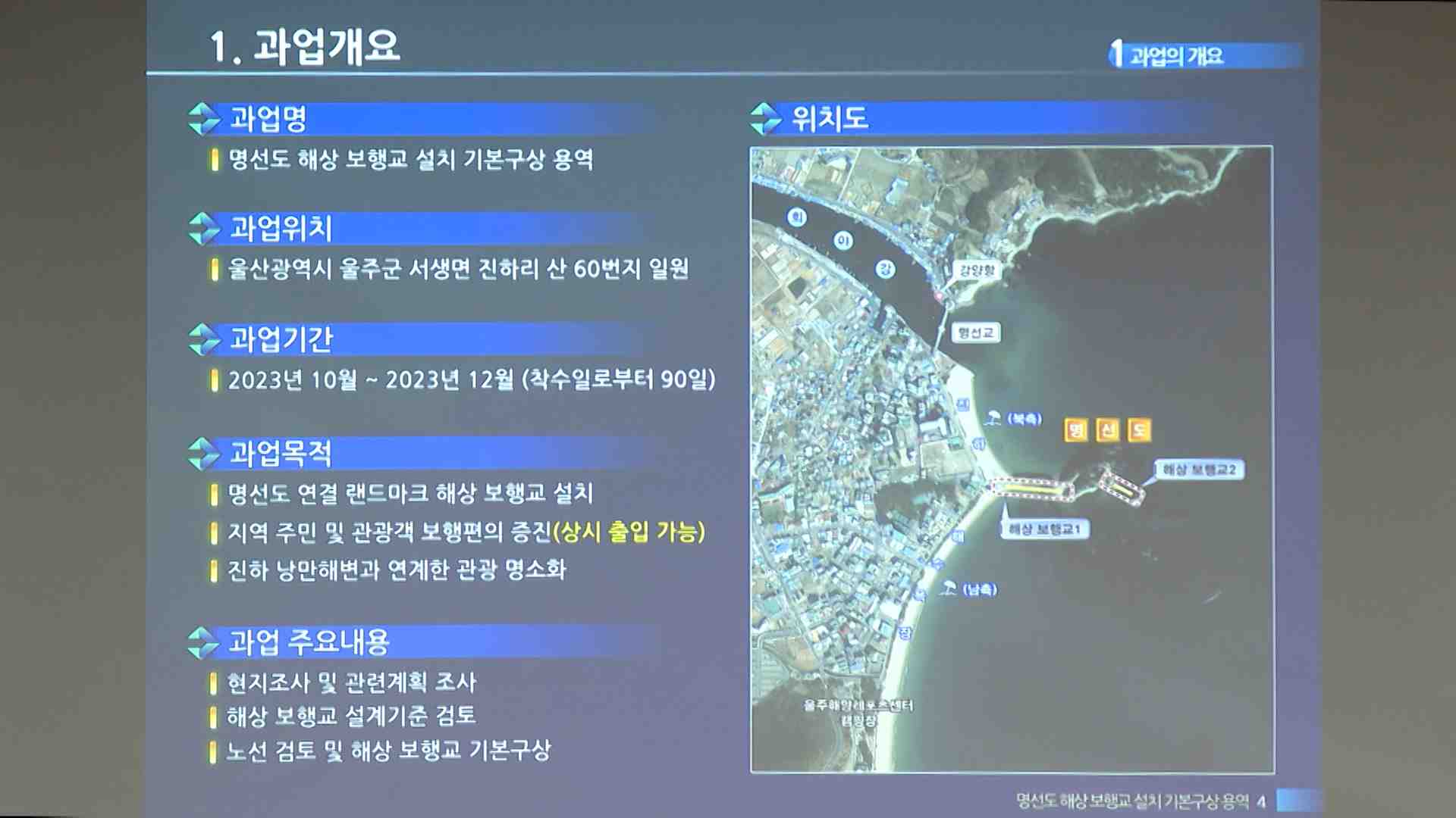울주군은 진하해수욕장과 명선도를 잇는 해상보행교 설치 사업을 본격 추진한다고 밝혔습니다. 울주군은 오늘(1/10) 명선도 해상보행교 설치 기본구상용역 최종보고회를 열고 사업비 150억원을 투입해 주변 경관과 어우러진 보행교 설치사업을 추진하기로 했습니다. 명선도는 2022년 7월 아간조명을 설치한 이후 지난해 말...