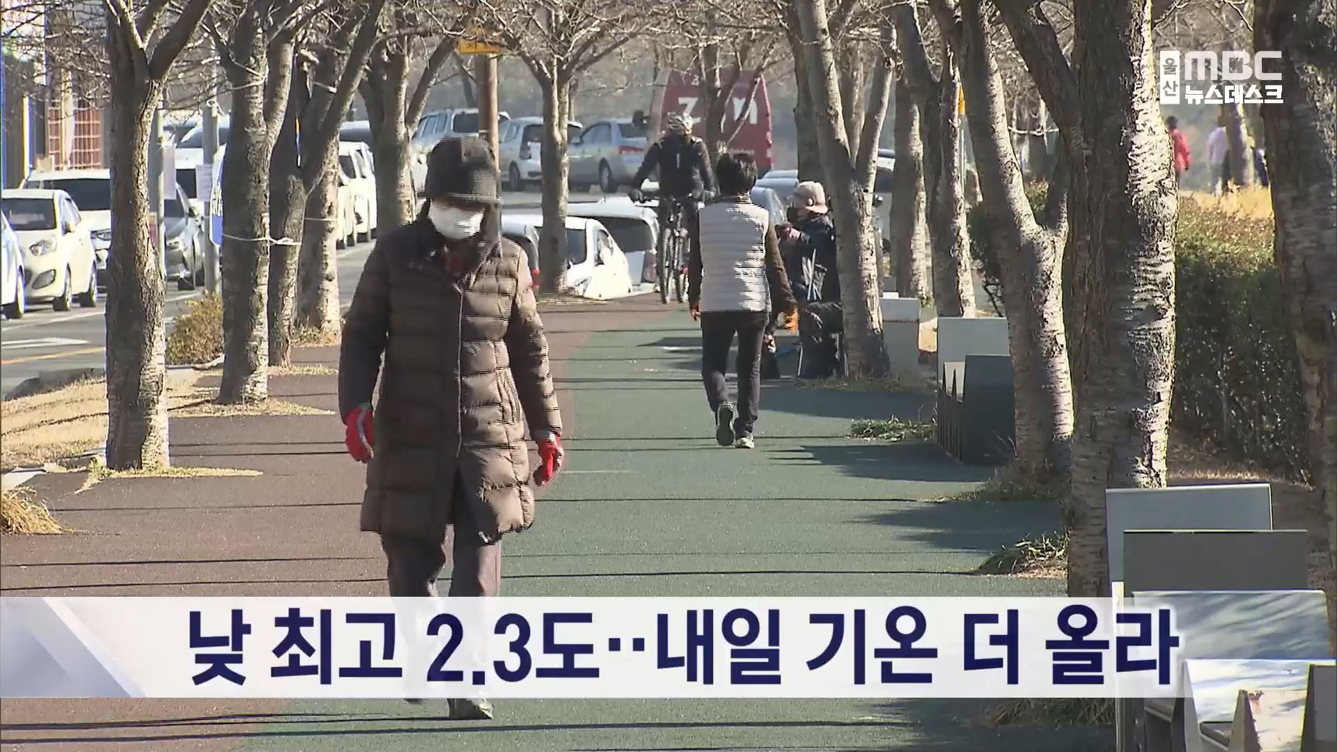 주말인 오늘(12/23) 울산지방은 낮 최고 기온이 2.3도로 어제보다 4도 가량 오르며 평년 기온을 점차 회복하겠습니다. 내일은 기온이 더 오르며 아침에는 영하 3도로 시작해 낮에는 영상 6도가 예상됩니다. 울산기상대는 연일 이어지는 건조특보로 대기가 매우 건조하다며 각종 화재나 산불에 각별한 주의를 당부했습니다....