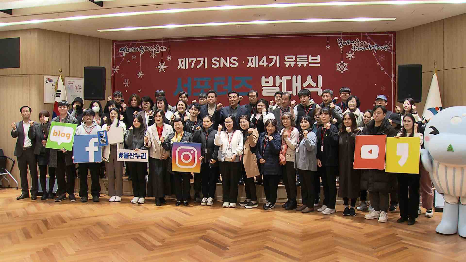 울산지역 소식을 알리는 SNS·유튜브 서포터즈 발대식이 오늘(12/14) 울산시의회 시민홀에서 열렸습니다.SNS 40명, 유튜버 10명으로 꾸려진 서포터즈는 내년 1월 1일부터 2년 동안 울산지역 문화예술 행사와 생활정보 등에 대한 콘텐츠를 통해 소식을 전하는 역할을 맡게 됩니다.울산시는 서포터별 콘텐츠 제작 횟수와 조회...
