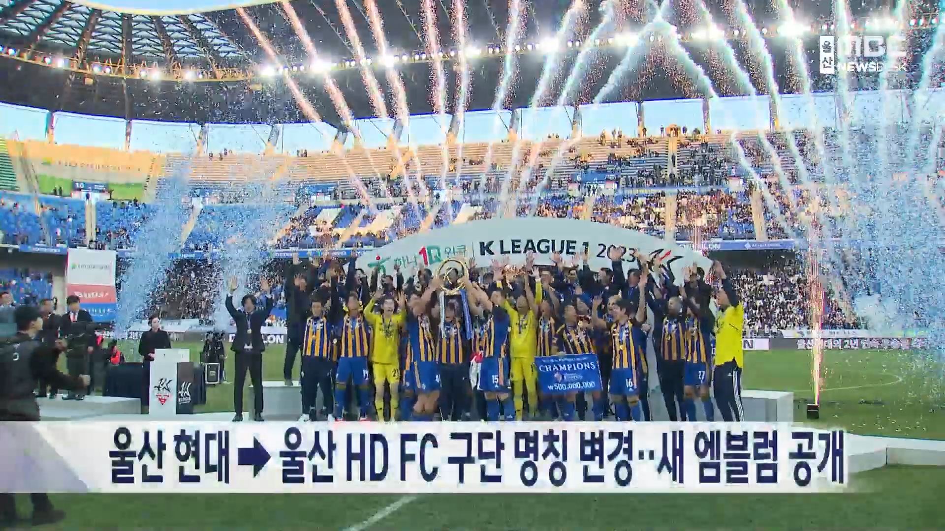 올해 K리그 2연패에 성공한 프로축구 울산현대가 내년부터 울산 HD FC로 구단 이름을 바꾸고 활동합니다.(에이치디 에프씨)변경된 구단 명칭인 울산 HD FC는, 지난 4일 열린 한국프로축구연맹 이사회에서 승인을 받았으며 구단을 상징하는 엠블럼도 새롭게 변경했습니다.HD FC는 용맹한 호랑이를 형상화한 새로운 구단 엠블...