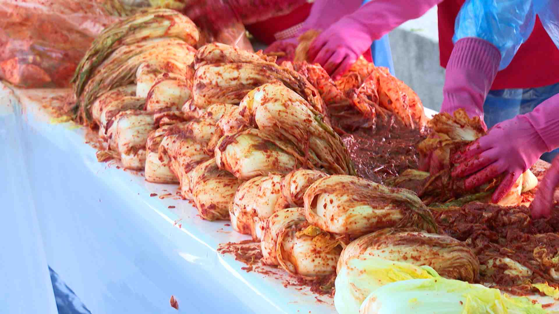 SK와 함께하는 울산행복 김장나눔 행사가 오늘(11/27) 울산대공원 남문 광장에서 열렸습니다. SK봉사단 등 자원봉사자 300명은 배추 8천 포기와 무 1만 개로 김장을 담가 저소득가정 1천8백여 세대와 사회복지시설에 전달했습니다. 울주군 여성단체협의회도 오늘 군청 2층 광장에서 자원봉사자 등 70명이 참가한 가운데 김...
