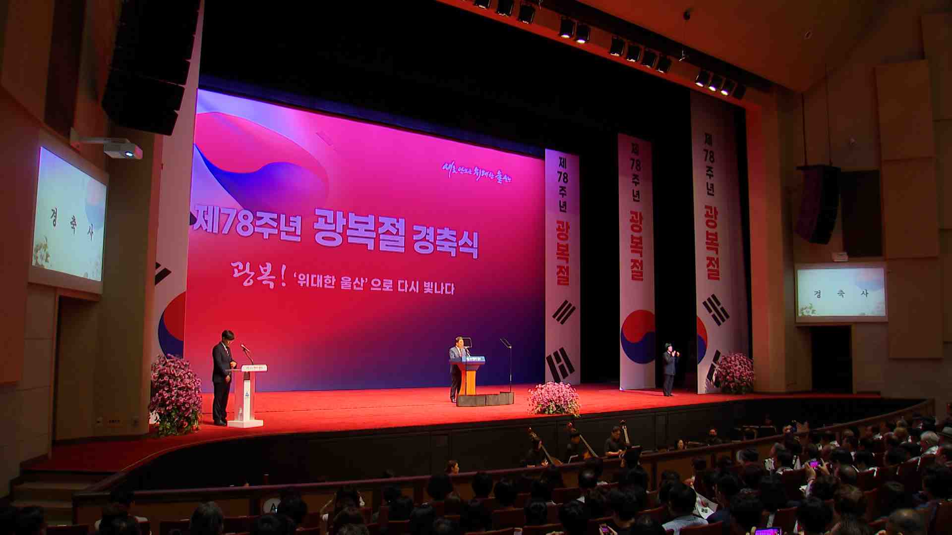 제78주년 광복절 경축식이 오늘(8/15) 오전 울산문화예술회관에서 열렸습니다. 올해 경축식은 독립유공자 유족에 대한 예우를 강화해 남진석 광복회 지부장 등 유족 대표 10명, 유공자 증손 자녀인 어린이 2명 등 주요 내빈이 입장식에 참가했습니다. 경축식에 앞서 울산항일독립운동기념탑 참배가, 이후에는 북구 고헌 박...