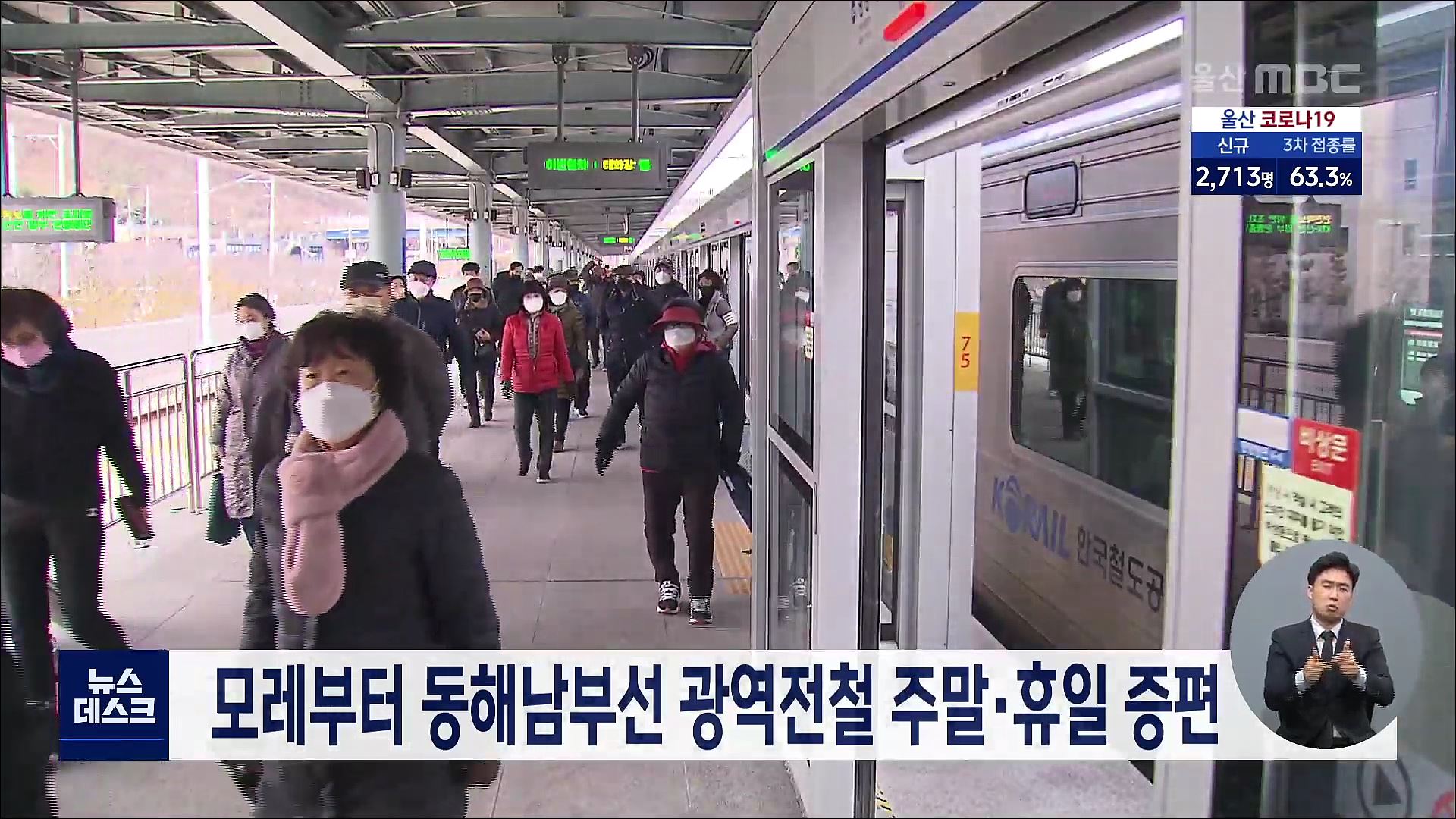 모레부터 동해남부선 광역전철 주말·휴일 증편