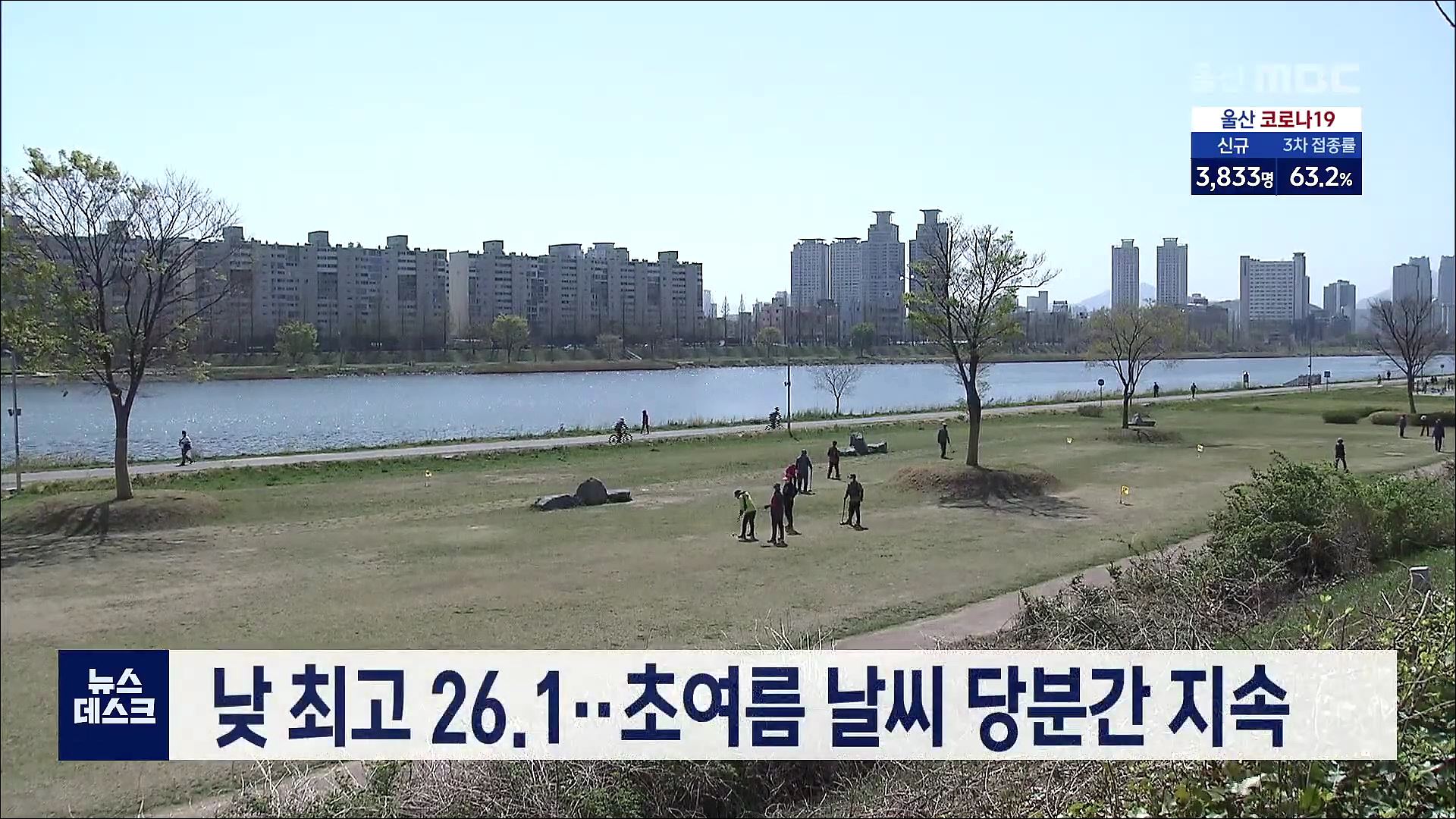 주말인 오늘(4/9) 울산은 대체로 맑은 가운데 낮 최고 기온이 평년보다 8도 이상 높은 26.1도까지 올라 초여름 날씨를 보였습니다. 휴일인 내일(4/10)도 맑은 날씨가 이어지겠고 기온은 12도에서 26도의 분포로 오늘과 비슷하겠습니다. 울산기상대는 당분간 낮 기온이 20도를 웃도는 날씨가 이어지다 다음 주 중반 한 차례 ...