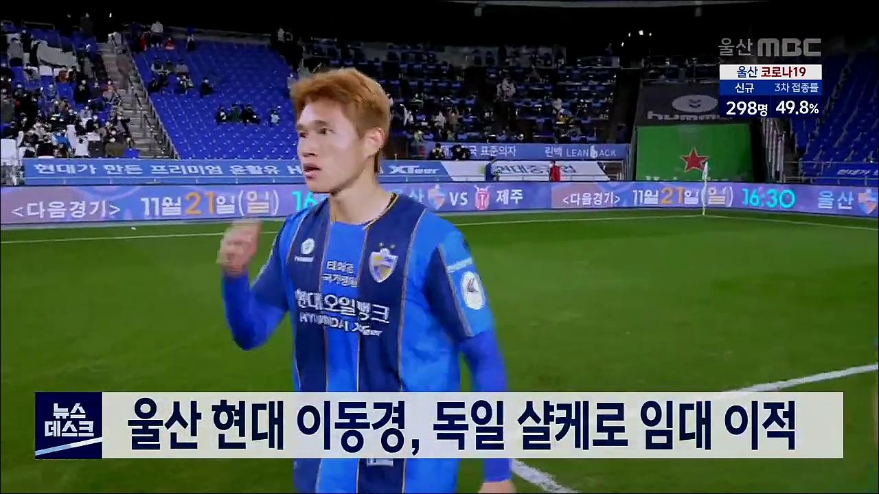 울산 현대의 미드필더 이동경이 독일 2부 분데스리가 샬케 이적을 확정했습니다. 샬케는 구단 홈페이지를 통해 이동경을 2021~22시즌 말까지 임대 영입했으며 완전 이적 옵션이 포함돼 있다고 발표했습니다. 이동경은 올해 25살로 2018년 울산에서 프로 생활을 시작했으며 2019년 국가대표로 발탁됐습니다.//