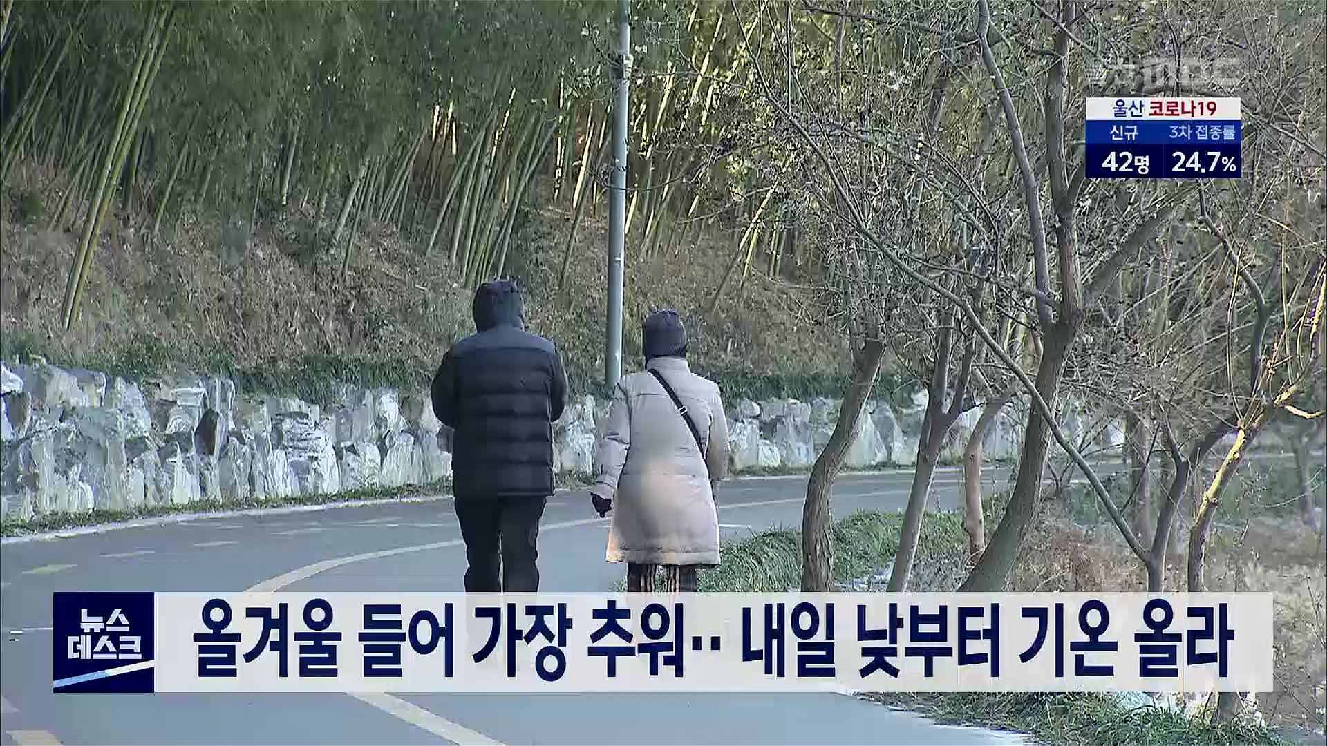 성탄절인 오늘(12/25) 울산지방은 대체로 맑은 가운데 낮 최고 기온이 4.1도에 머물렀고 바람도 강하게 불어 종일 쌀쌀했습니다. 휴일인 내일도 대체로 맑겠지만 아침 최저 기온이 영하 9도까지 떨어지고, 한낮에도 영하의 기온이 이어지는 등 올 겨울 들어 가장 춥겠습니다. 울산기상대는 내일 밤까지 강풍주의보가 발효돼...