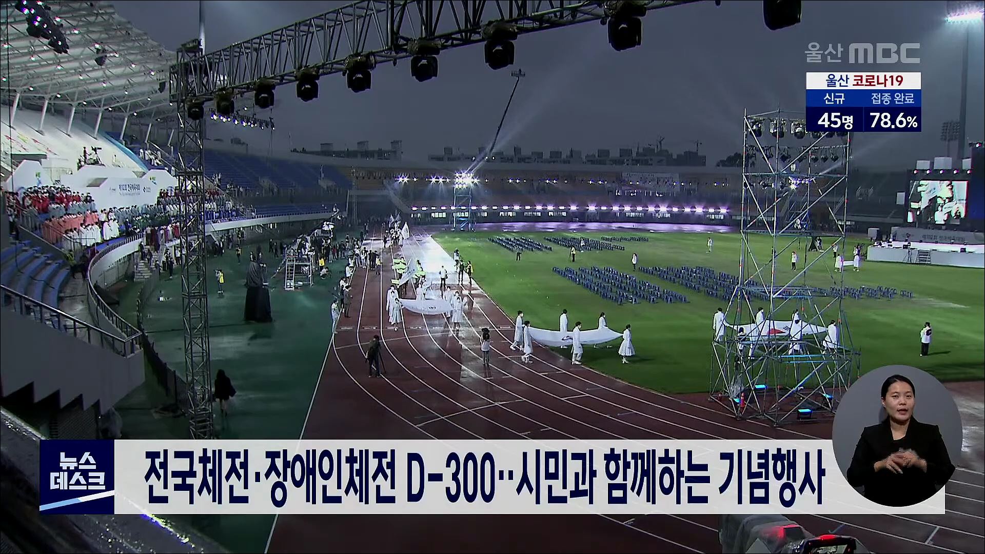 내년 울산에서 열리는 전국체육대회와 전국장애인체육대회의 개최가 300일 앞으로 다가오면서 시민과 함께하는 첫 기념 행사가 열렸습니다. 오늘부터 시청 햇빛광장에는 체육대회 개최까지 남은 기간을 표시하는 안내판이 설치됐고, 대회의 성공적인 개최를 기원하는 각종 공연과 체험 행사가 시민들에게 제공됐습니다.//