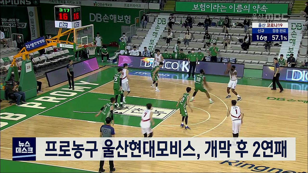 프로농구 울산현대모비스가 오늘(10/11) 원주 원정경기에서도 패하며 개막 이후 2연패에 빠졌습니다. 울산은 외국인 용병 클락이 양팀 최다인 25점 15리바운드로 분전했지만 원주 DB의 수비에 막혀 고전하다 81대 69로 패했습니다. 울산 현대모비스는 오는 16일 안양KGC를 잡고 2연패에서 탈출한다는 각오입니다.