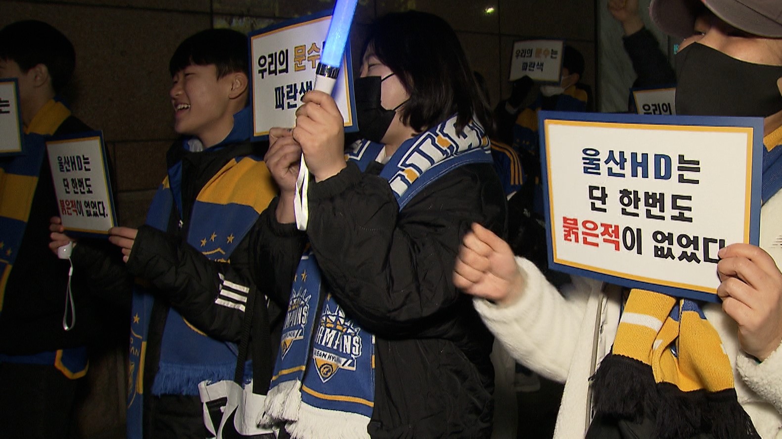 문수축구경기장 관람석을 빨간색으로 교체하는 울산시의 계획에 반발한 축구팬들이 이틀 연속 도심에 모여 문화제를 개최했습니다. 울산HD 팬들로 구성된 파란문수지키기 비상대책위원회는 지난 17일에 이어 어제(1/18) 저녁에도 남구 현대백화점 앞에서 반대 집회를 열었습니다.이들은 울산시를 상대로 구단 상징인 파란색...