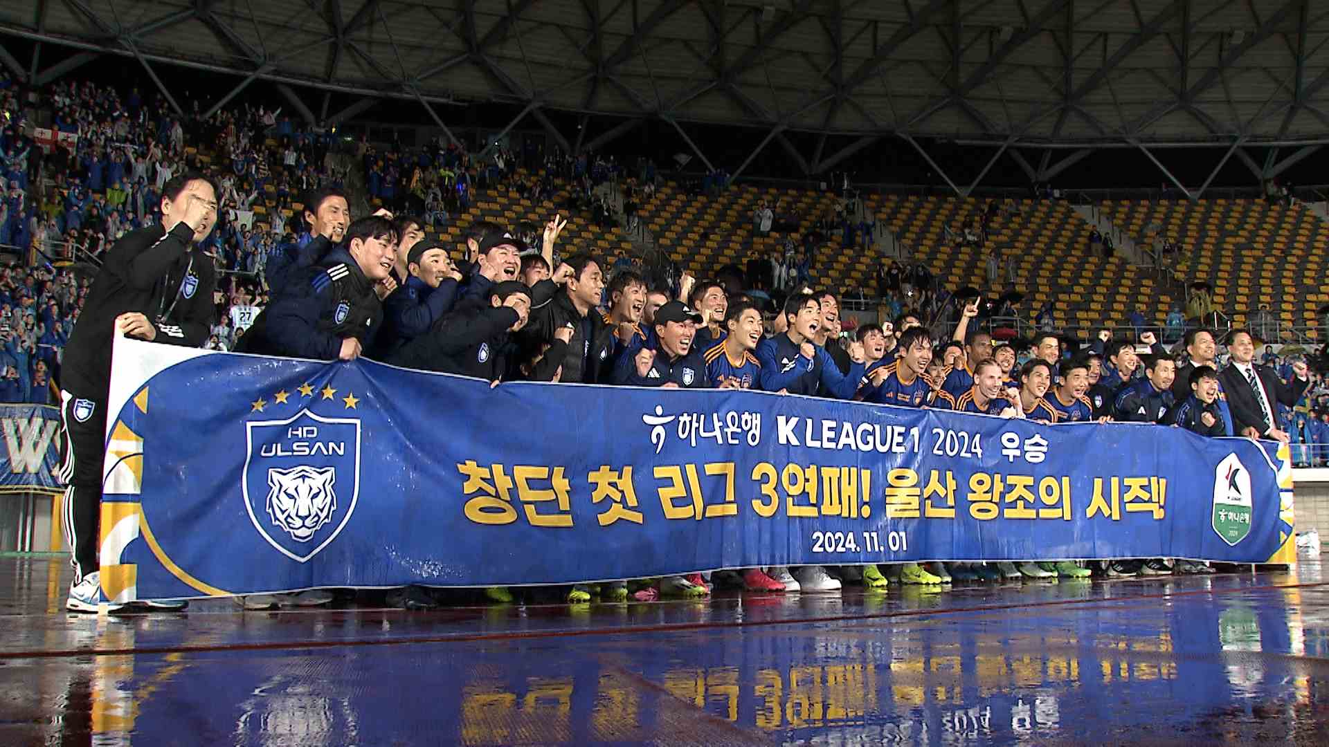 프로축구 울산HD가 리그 3연패를 확정한 가운데, 내일 울산 문수축구경기장에서 수원과의 리그 최종전을 치릅니다. 우승을 확정한 울산은 경기 전후 다양한 공연과 함께 3연속 우승을 기념하는 포토존 등을 운영할 예정입니다. 또 경기 종료 이후 홈 팬들과 함께하는 화려한 우승 퍼포먼스를 벌인다는 계획입니다.