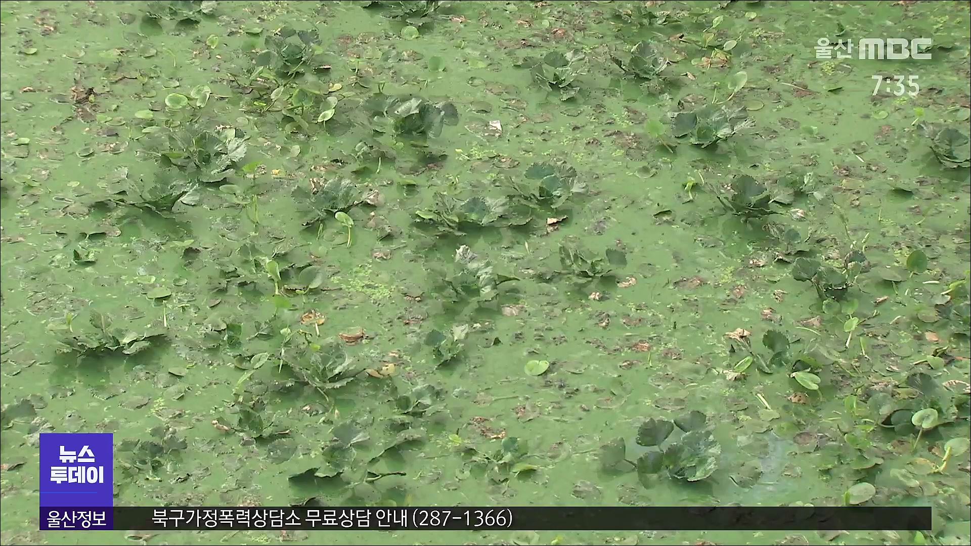 [앵커] 폭염에 강수량 부족까지 겹치면서, 낙동강에 역대 최악의 녹조가 발생했습니다. 수돗물은 정수 처리를 마쳤기 때문에 괜찮다.. 라는게 환경부 입장인데, 부산 시민들은 불안하기만 합니다. 윤파란 기자가 보도합니다. [리포트 ] 부산 북구와 경남 김해를 끼고 있는 낙동강 하류입니다. 초록색 물감을 푼 듯 물 색깔...