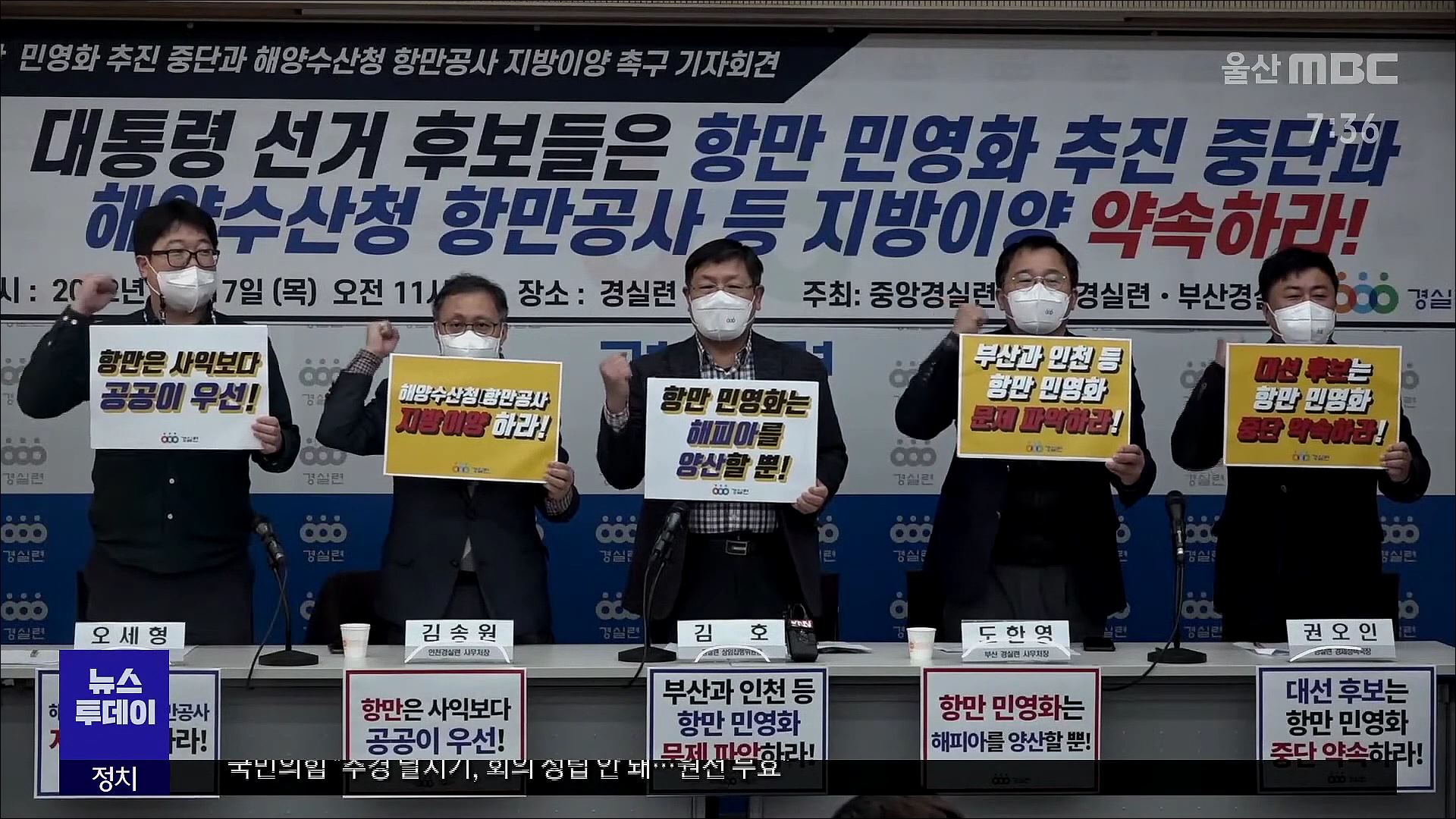 ◀앵커▶ 최근 관련법이 바뀌면서, 민간업자들이 바다를 매립해 개발할 수 있는 길이 열렸습니다. 시민단체가, 공유수면 매립부지의 난개발을 막아달라며 대선주자들에게 관련법에 대한 재개정을 요구하고 나섰습니다. 박준오 기자의 보도입니다. ◀리포트▶ 이르면 내년 하반기에 착공하는 부산항 진해신항 예정 부지입니다. ...