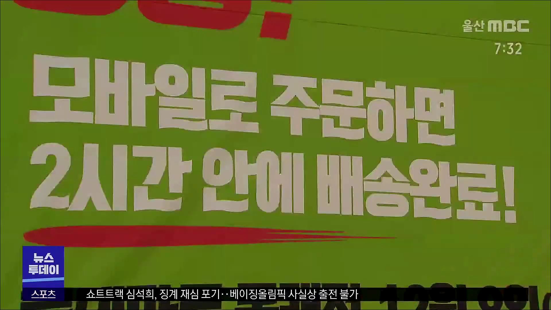 ◀앵커▶ 새벽배송과 당일 배송,또 바로배송까지.. 유통업계의 배송경쟁이 부산에서도 점점 치열해지고 있습니다. 이제 경쟁무대가 '가격 할인'에서 '빠른 배송'으로 옮겨가는 모습입니다. 코로나 19 장기화가 낳은 신풍속도 , 배범호기자가 보도합니다. ◀리포트▶ 유통업계에서 빠른 배송은 이제 선택이 아니라 필수가 됐습니...